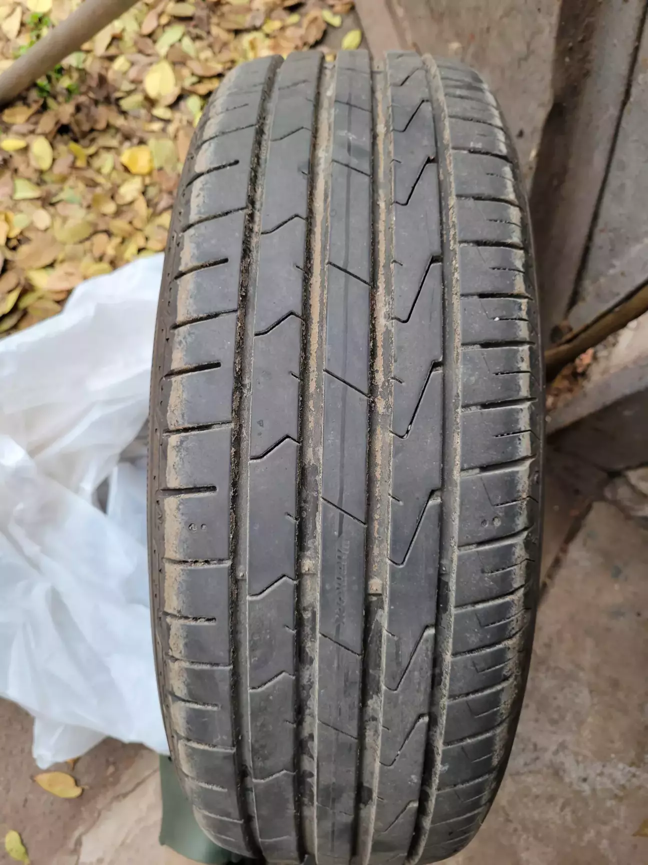 При купівлі автомобіль був на літній гумі. До речі, гума гарна: Hankook Ventus Prime 3 K125 91V, 2023 рік виробництва. Таку саму я купляв на Гольф батька ще у 2022 р. Гарна гума для відведення води, гальне гальумвання на мокрих поверхнях, але є мінус - досить мяка бігова частина, тому часто проколюється. Принаймні, такий досвід у мого батька.