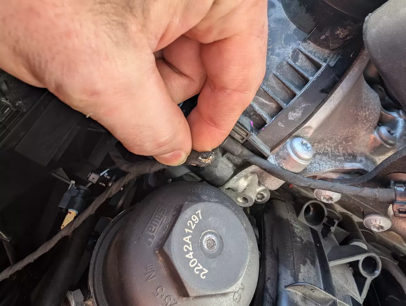 Тож заходимо роз'єм з біло-фіолетовим проводом і коротимо його на массу. В вимірюваних величинах нічого не міняється. Отже винен або провод або блок ДВС. При поверхневому огляді на відстані 10см від роз'єма знаходжу перебитий провод та ремонтую.