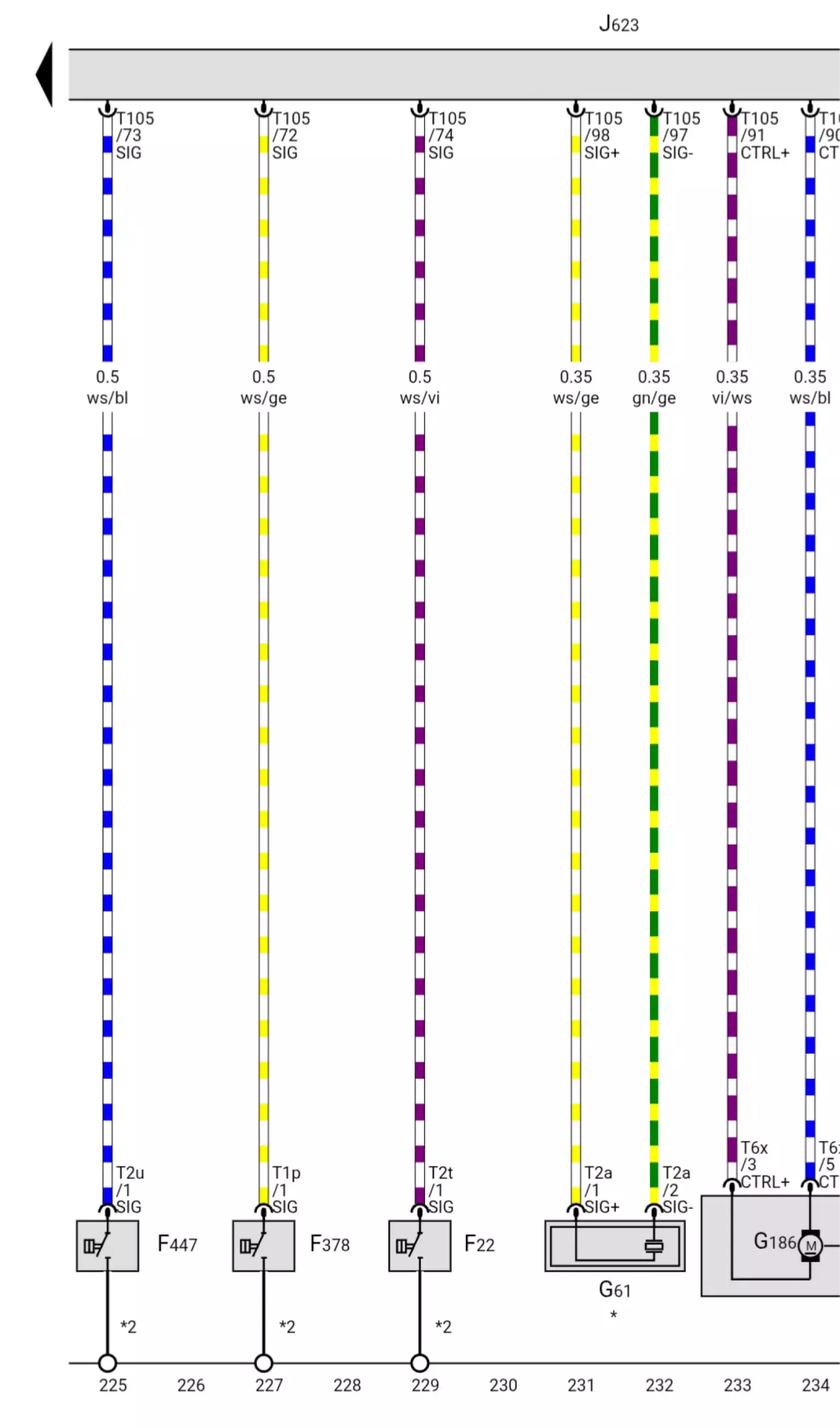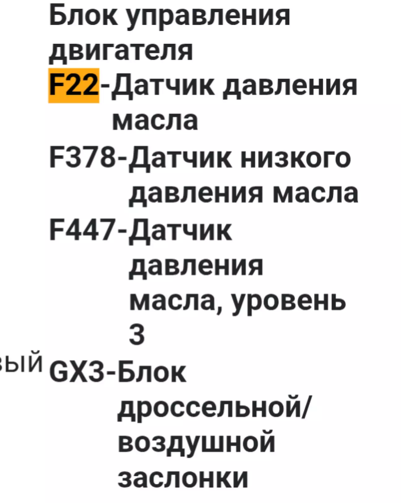 Тепер до датчиків. Одіс нам по цій помилці каже, що неправильно працює датчик F22. Запускаємо ДВС. В вимірюваних величинах при наборі обертів один датчик міняє параметри, інший -ні. Відкриваємо Elsa: на електро схемі нас цікавить колір провода датчика F22 та його розташування на ДВС.