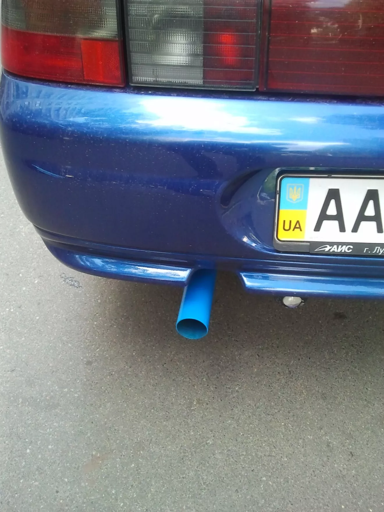 Покрасил трубу в синий цвет (по факту получился голубого цвета…).