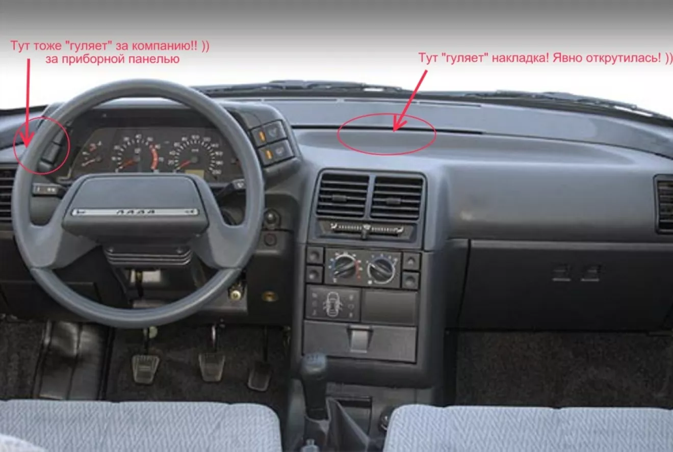 3) Самая "напрягающая" меня проблема-торпедо салона (точнее верхняя накладка). Это просто жесть, она и стучит и скрепит на неровностях. Даже при включенной печке потрескивает… Сначала открутилась центральная гайка (насколько я понял) накладки. После поездки к теще, откручиваться начала гайка слева, за приборной панелью. Не та, что закрыта заглушками слева и справа торпедо, а именно возле нее (заглушки слева). То есть сама накладка начала как говориться "гулять". Центр и лево уже гуляют, осталось еще справа раскрутиться гайкам и бери хоть руками снимай накладку!))))) Читал, что их закрутить-половину торпеды разобрать нужно. Подскажите, так ли это или возможно есть народные способы борьбы с моей проблемой?!