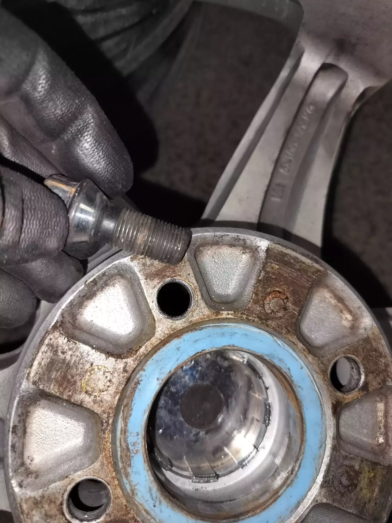 Колісний болт поклав болт на мої бажання. Не вліз в відповідний отвір колісного диску. Жарти про "не розтягнулося" пропускаєм, свердлити мені то діло якось трохи впадло, бігати шукати по Швеції розвьортки тоже - тому забив болт.