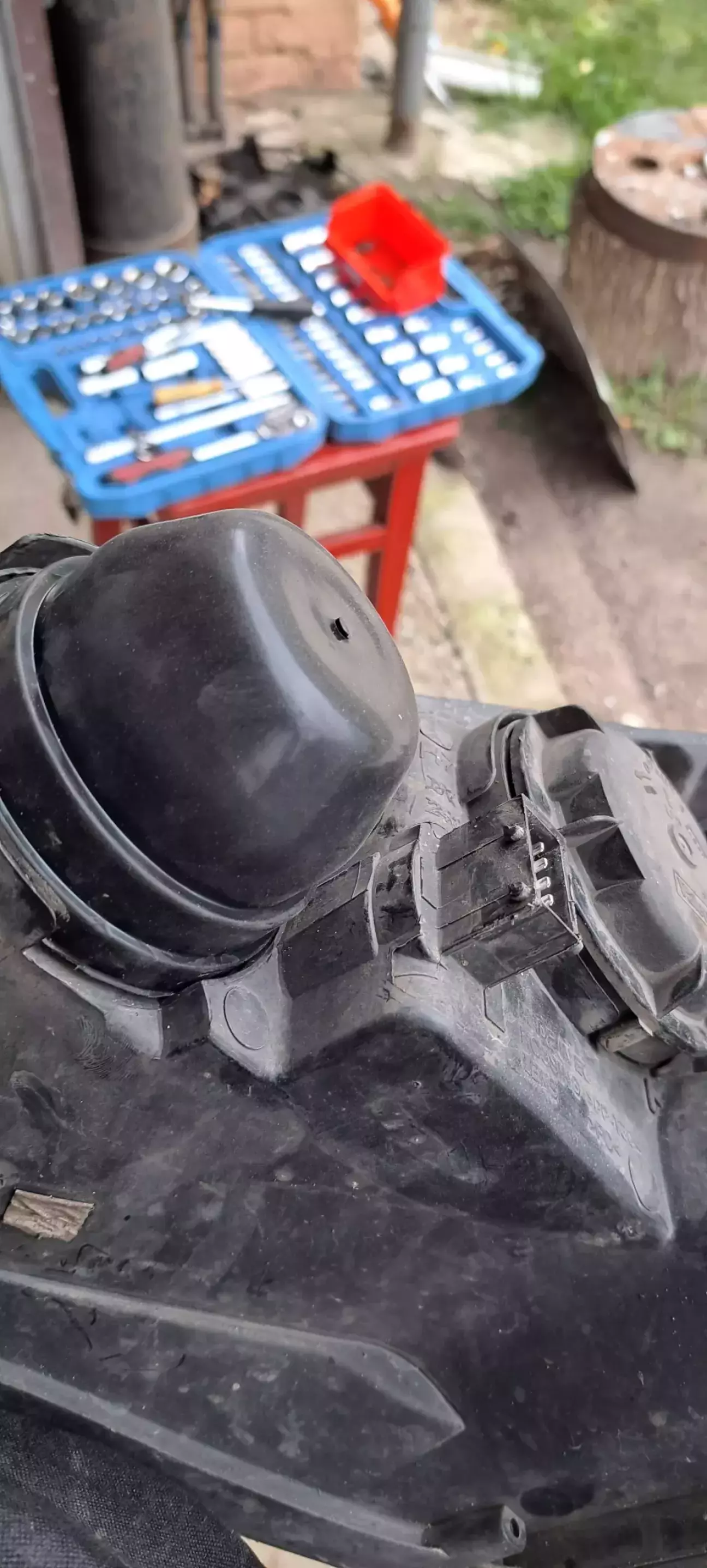 З моменту купівлі ніяк не доходили руки купити відсутні задні кришки лівої фари. Ну після офроуда в лісі туди набило купу землі. Все вимив і поставив універсальні заглушки, однак по хорошому тепер прийдеться шукати нову фару, тому що відбивач на всі 100 відсотків вже не буде працювати.