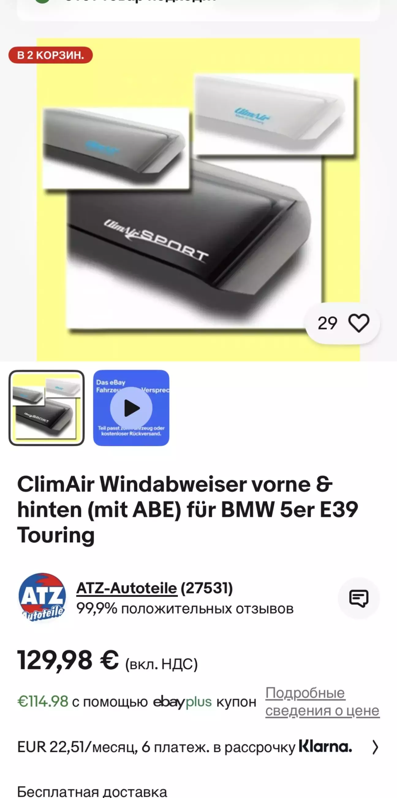На eBay було придбано комплект ветрових дефлекторів за 130€. Вибір був з трьох видів:
