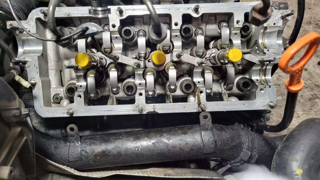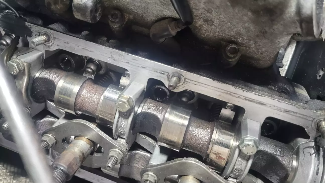Виставляю все по міткам ГРМ і пробую прокручувати двигун, і тут через прокрут 90 градусів клин, двигун не прокручується. Перед збіркою клапана, на яких не було рокерів і які не працювали пробував легенько нажимати і відмочувати ВДшкою, наче всі рухались, але, походу коли нові рокера і гідрики почали клапан піднімати на потрібну величину він клинив, розбираю поки що одну голову назад, буду дивитись який кулачьок набігає і який клапан не прожимається, вскритіє показало що один рокер злетів, і один середній клапан в клині, розбираємо все назад ставимо рокер, розробляємо