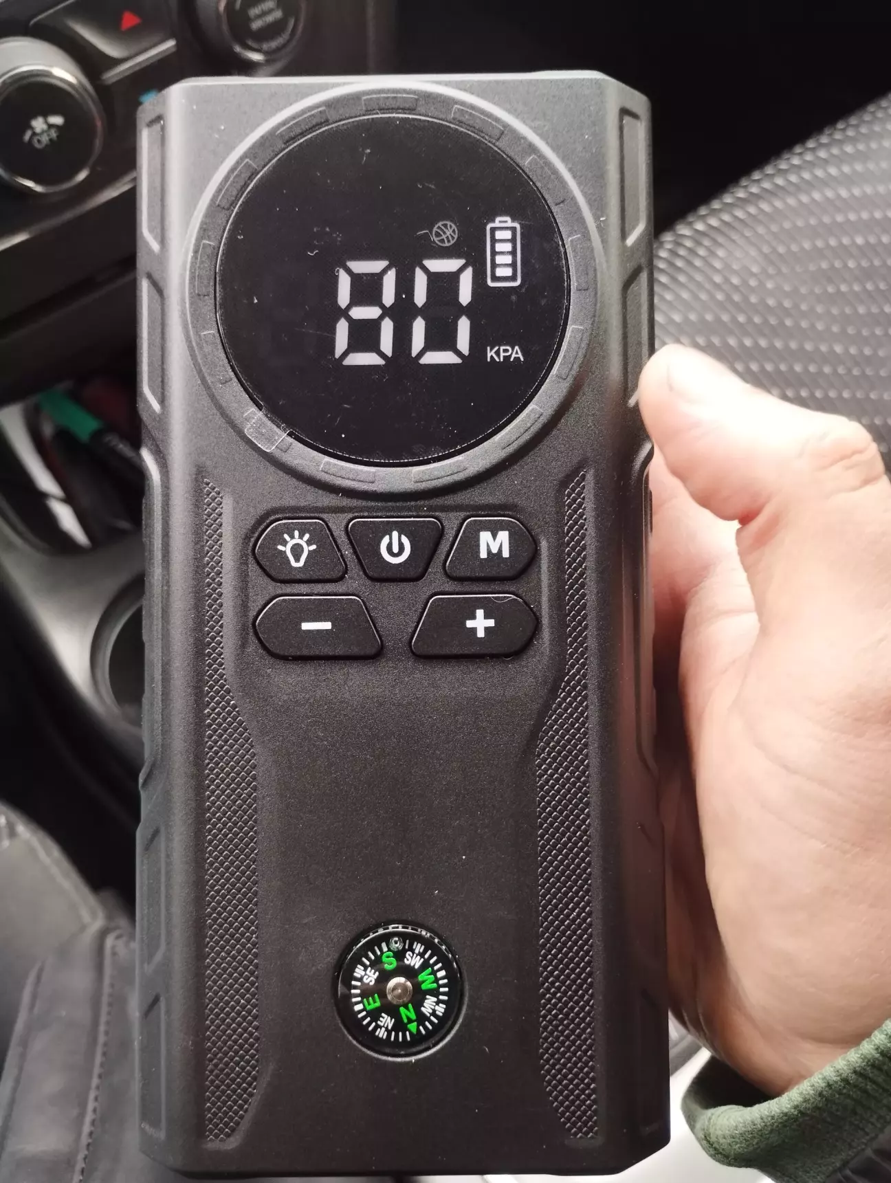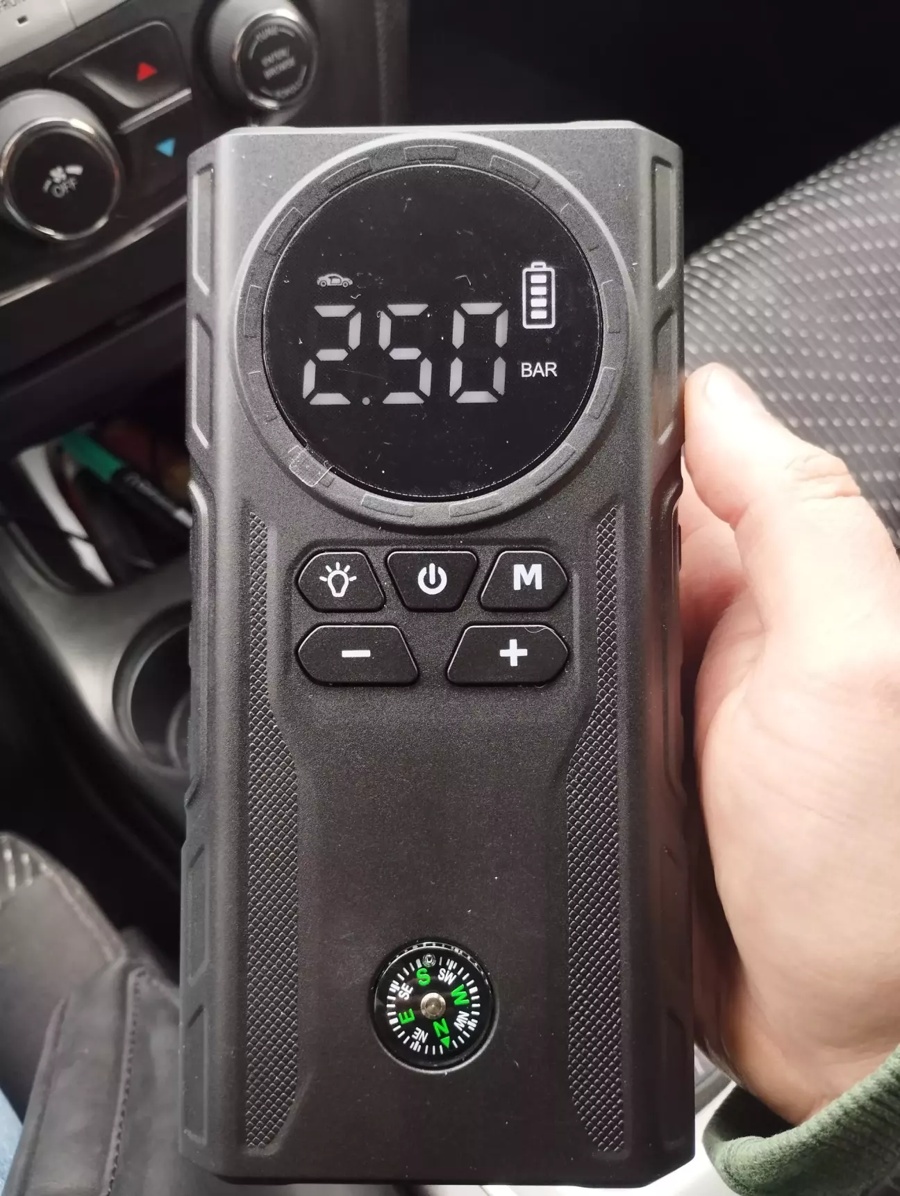 Комплектация: бустер, шланг быстросъём для подкачки, насадки , шнурок зарядки, чехол и "крокодилы". Колеса подкачивает,фонарики светятся, как повербанк можно юзать. Машины прикуривает. Уже прикурил им около 15 машин, максимальный объем был гелик G500 5L бензин после ночи севший акум, на изи. Из "тяжелого" был дизель ВАГ 1.9 , акум которого за 2 месяца умер в ноль - запуск легче , чем теплый крузак 300й 3литровый кажется или 1.5 литровые бензинки. Была севшая БМВ Х6, бустер висел долго на клемах, пока владелица оплачивала подписку и снимала пинкод с охраны - запуск моментальный. Был мини купер 60х годов карбюратор- как игрушка, так же и запустился легко. Вобщем к бустеру нареканий нет. После легкого запуска авто заряжается 15-40 минут. Если было 4-5 попыток, или долго висел на акуме, чтобы системы запитать, или вы его разрядили, используя как повербанк - время полной зарядки 3-4 часа примерно займет. Емкость не такая как на наклейке , фактически 6-8 а.ч. Что на мой взгляд можно предъявить в споре с продавцом и выиграть часть денег обратно, и это законно будет, ибо характеристики не отвечают заявленным. У Китайцев такое часто. 4 прикурки подряд думаю вывезет. Но как и любой акум не стоит зимой оставлять на ночь в машине- сократится его возможность холодным отдать ток. Рассматривал конденсаторные бустеры- понял, что лучше за его цену собрать сборку из нескольких батарей на реальные 15+ А.ч и с быстрой зарядкой самого себя ,которых хватит за глаза на все случаи жизни. Чего не хватает , или придираюсь - быстрой зарядки самого бустера. Хотелось бы чтобы он заряжался раза в 2 быстрее. Изначально после получения пропаял провода в "крокодилах" ,так сказать "для верочки" , обжатые это хорошо, но обжатые и пропаянные это еще лучше.