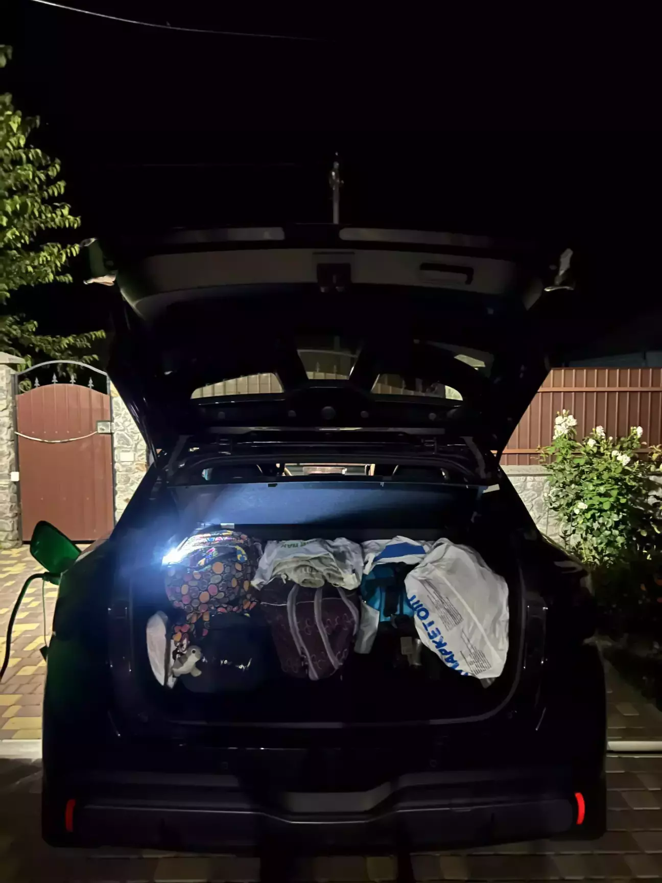 Перед поїздкою ретельно спланував маршрут, проаналізував, де по дорозі є швидкісні станції зарядки. І от — довгоочікуваний момент: речі спаковані, п’ятеро людей у машині, і о 4 ранку виїзд 🕓
