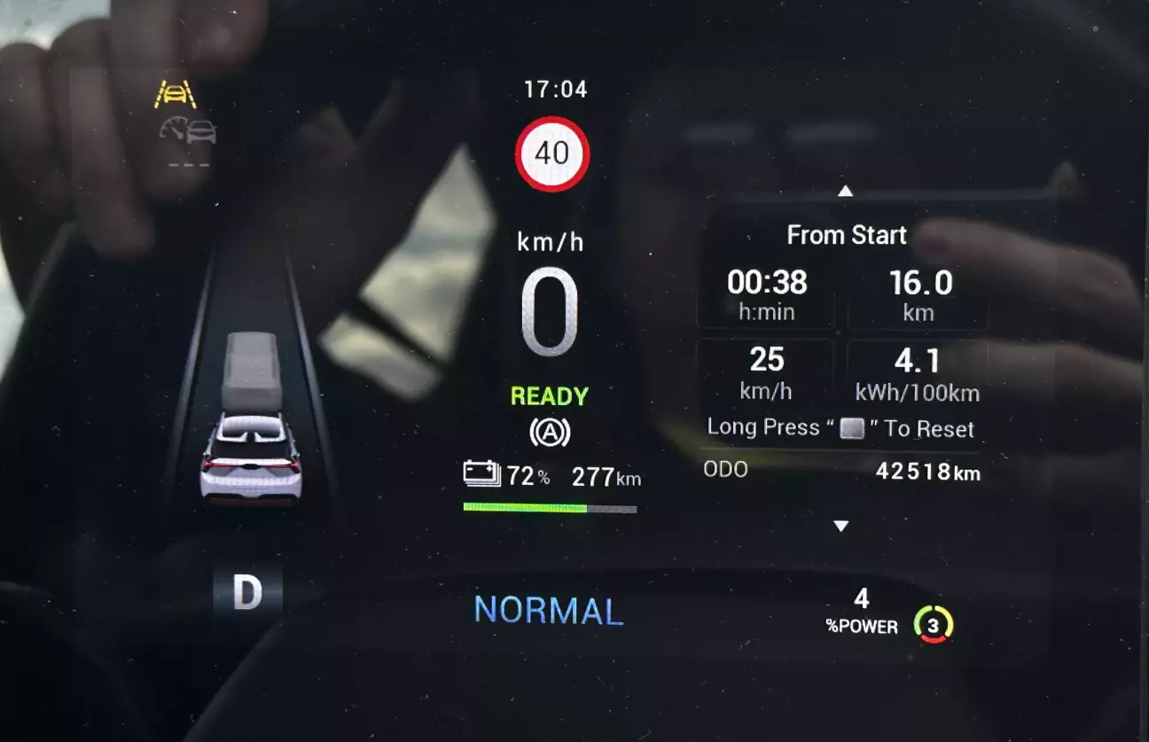 По дорозі з Буковелю до Яремче сфотографував борткомп’ютер — 4,1 кВт·год/100 км. Думав, що це неможливо, але факт — ось вам і “нерентабельність” електрокарів у горах 🙂