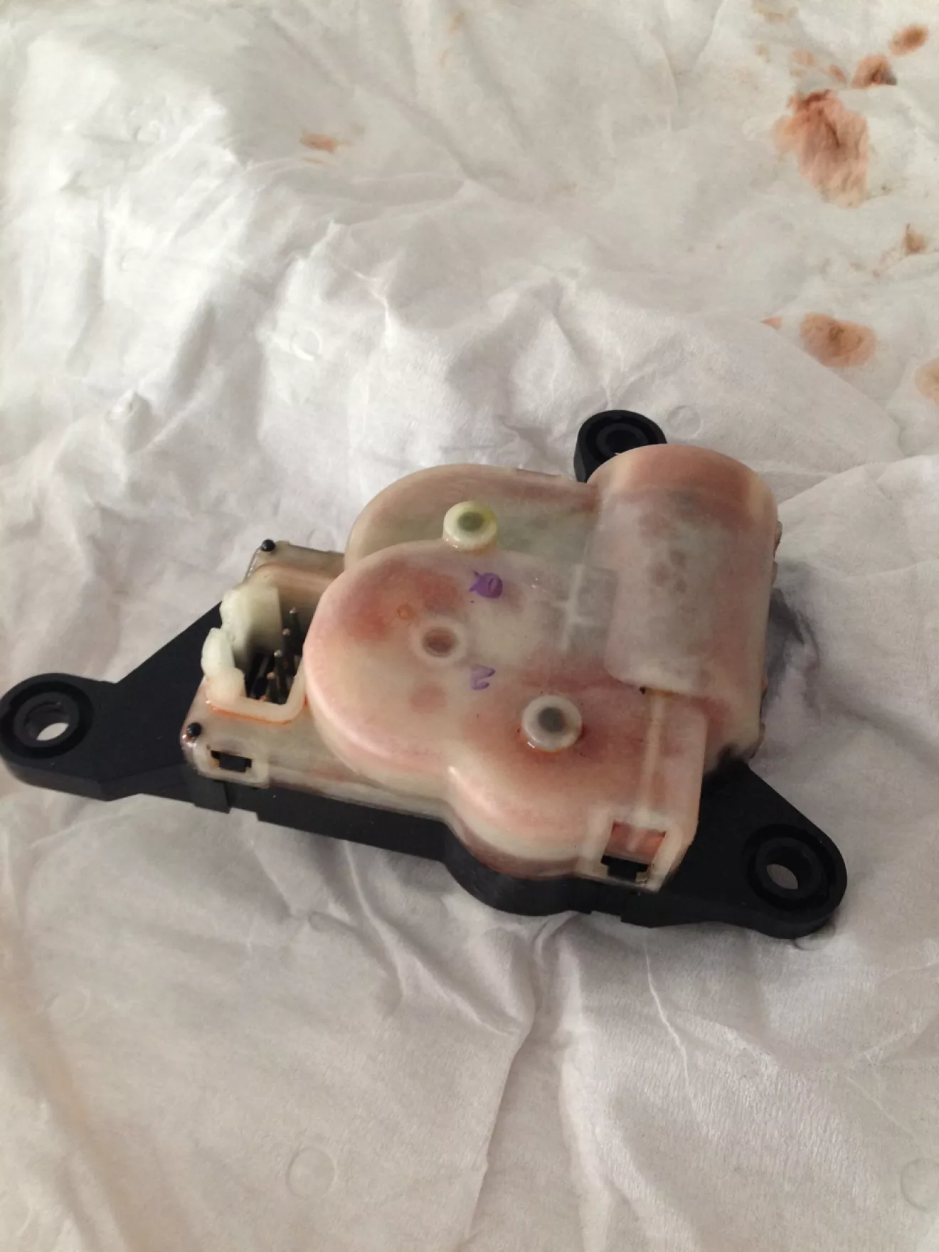 Вообщем вердикт следующий — протекание радиатора печи с последующим попаданием антифриза на моторчик заслонки.