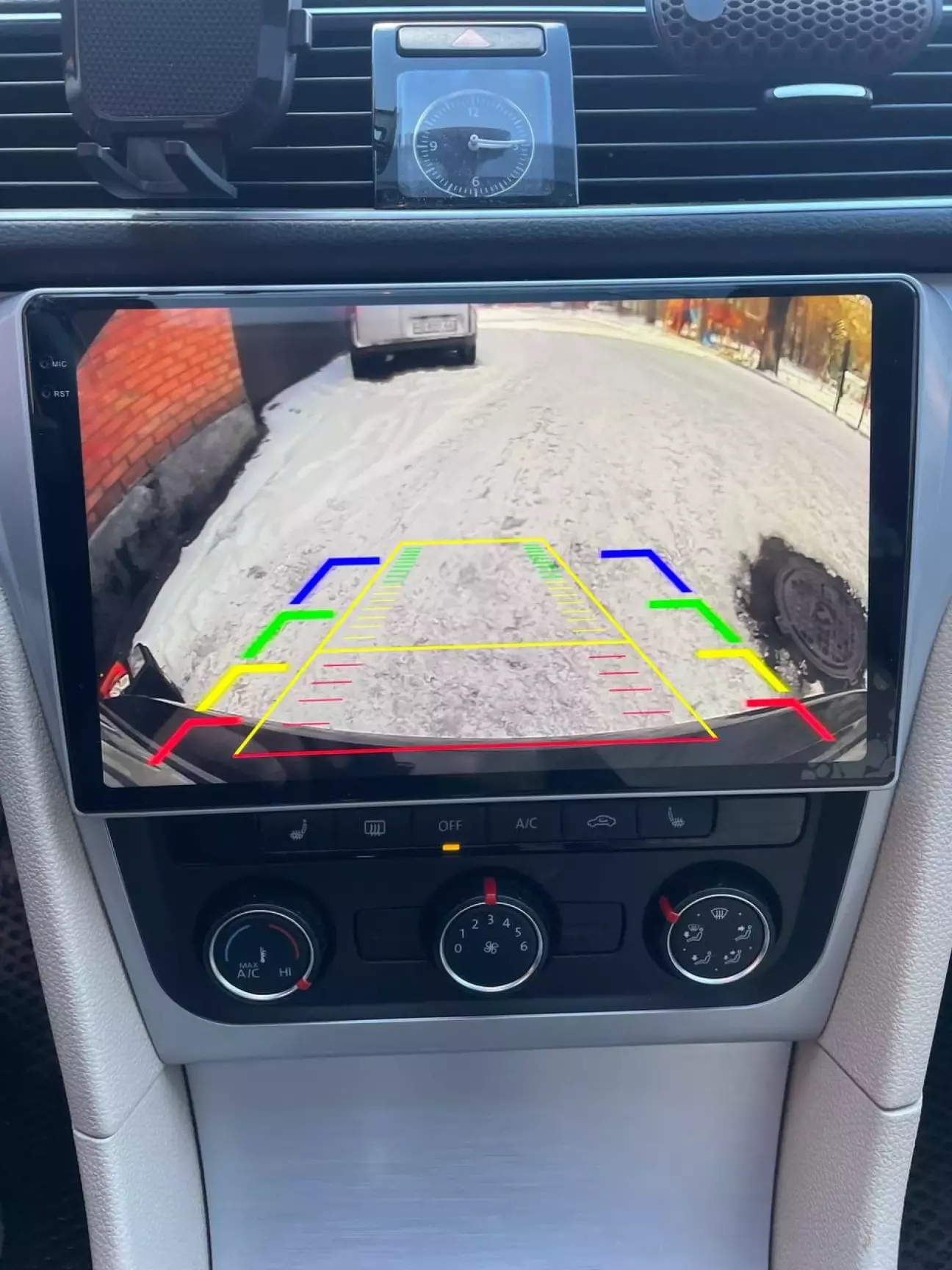 Камера запускається з затримкою в 1-2 секунди, адже процесор камери запускається одночасно з сигналом заднього ходу, що не суттєво як на мене. Я просто протупив і не протягнув окремий +12 V від блоку керування через весь салон, втомився та не хотів тягнути окремий дріт. З моменту встановлення пройшло 9 місяців, все працює коректно. Додатково можна встановити фільтр для "перешкод", бо на зображенні іноді помітно характерну "наводку".