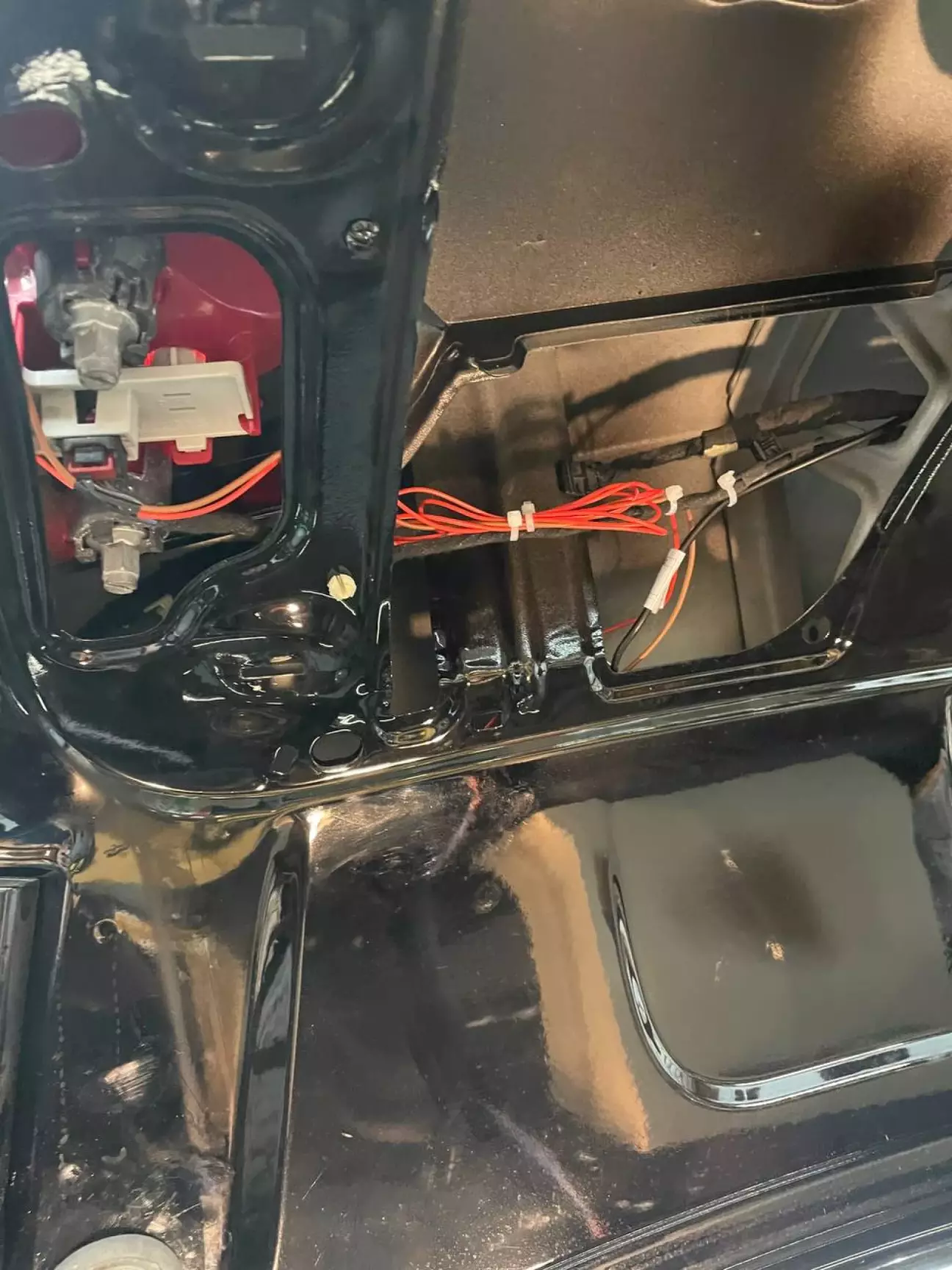 Дроти підключення прокладалися разом з дротами європейських поворотників, тому ліві накладки порога та багажник вже розібрані, це спрощує процедуру.