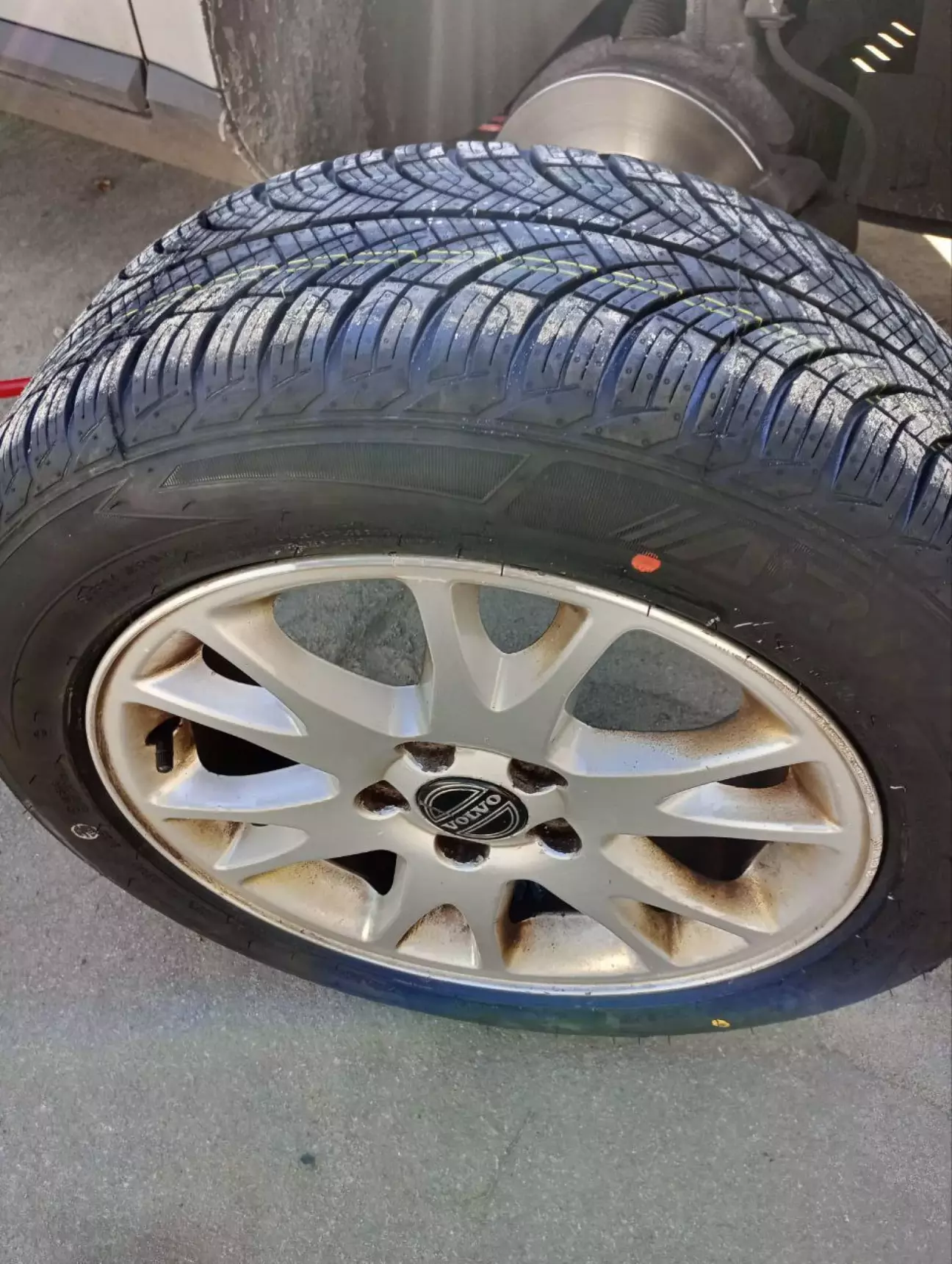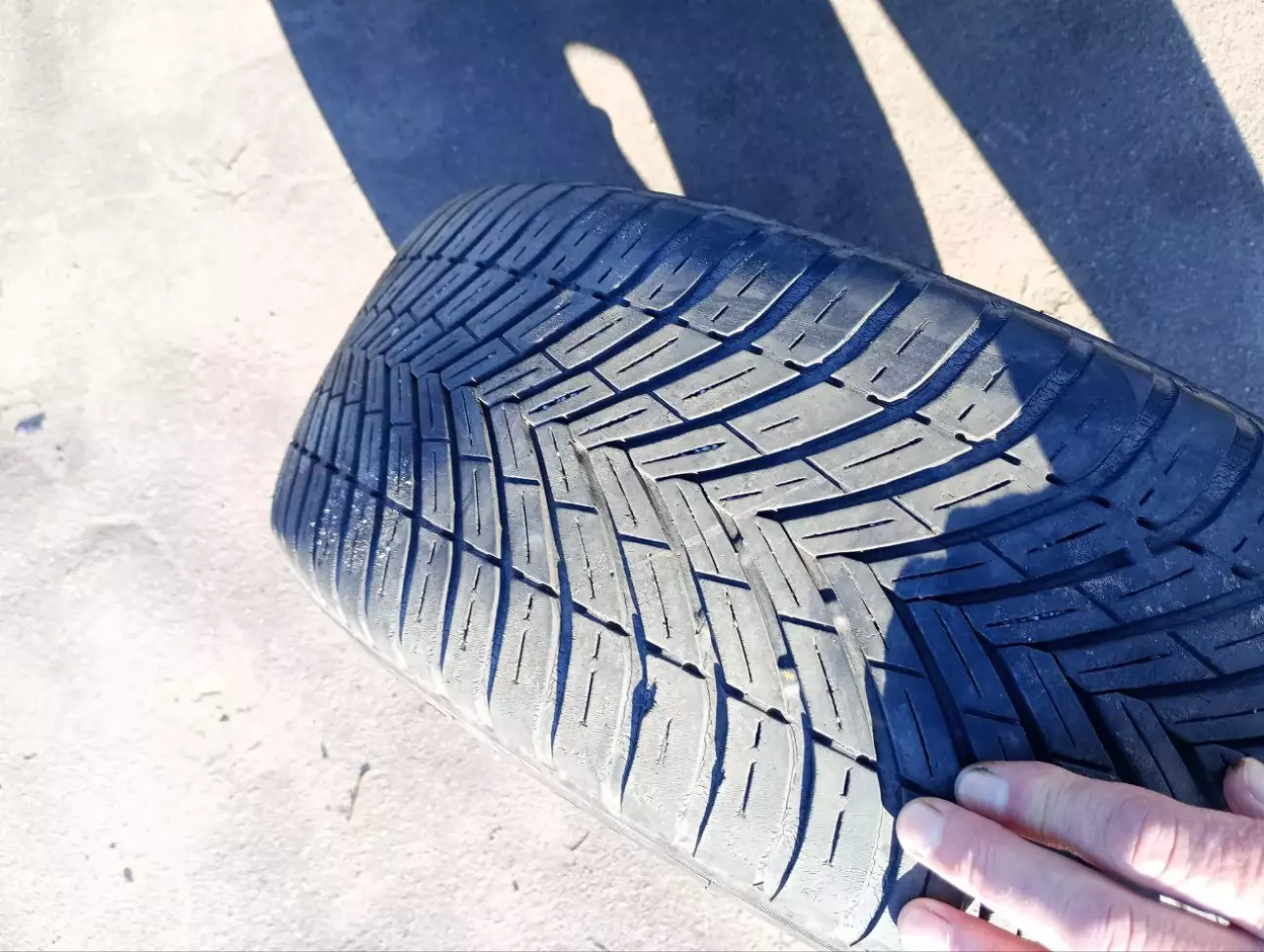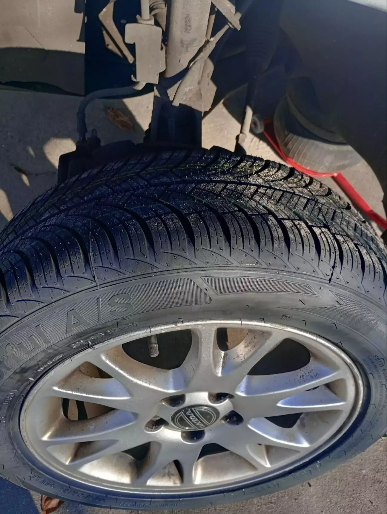 Осенью 2022, перед зимой стал вопрос о резине. Так как авто приехало на лете только, выбирал себе резину и решил взять всесезон - так как не люблю бегать по шиномонтажам постоянно. Тогда купил Toyo Celsius AS2 205/55 R16 и установил на пробеге - 281700км.. Сегодня уже 363300км - т.е. она проехала почти 82тыс. км. За все это время - вопросов к ней не было совсем. Она тихая, не плывет летом и не дубовая зимой, в снег гребра без каких-то проблем вовсе. Но тут на одном колесе случилась беда, скорее всего лопнул корд и кусок или отвалился или срезало о рельсу - не ясно. Это случилось буквально за пару недель.. т.е. смотрели - все ок было, и через пару недель уже такое как на фото)) Думал взять такую же Тойо, но на Инфошине посоветовали Китай, который якобы на заводе Конти делается (типа премиум Китай). Ну ок, попробуем 😀 Взяли пару не передок для пробы, и 2 оставили Тойо - там протектора до весны 100% хватит, т.е. где-то 100тыс. в общем она проедет - что очень не слабо) До замены резины - само собой смотрелась ходовая и развал (что бы понимать что все ок), а после замены резины - уже и сделали развал)