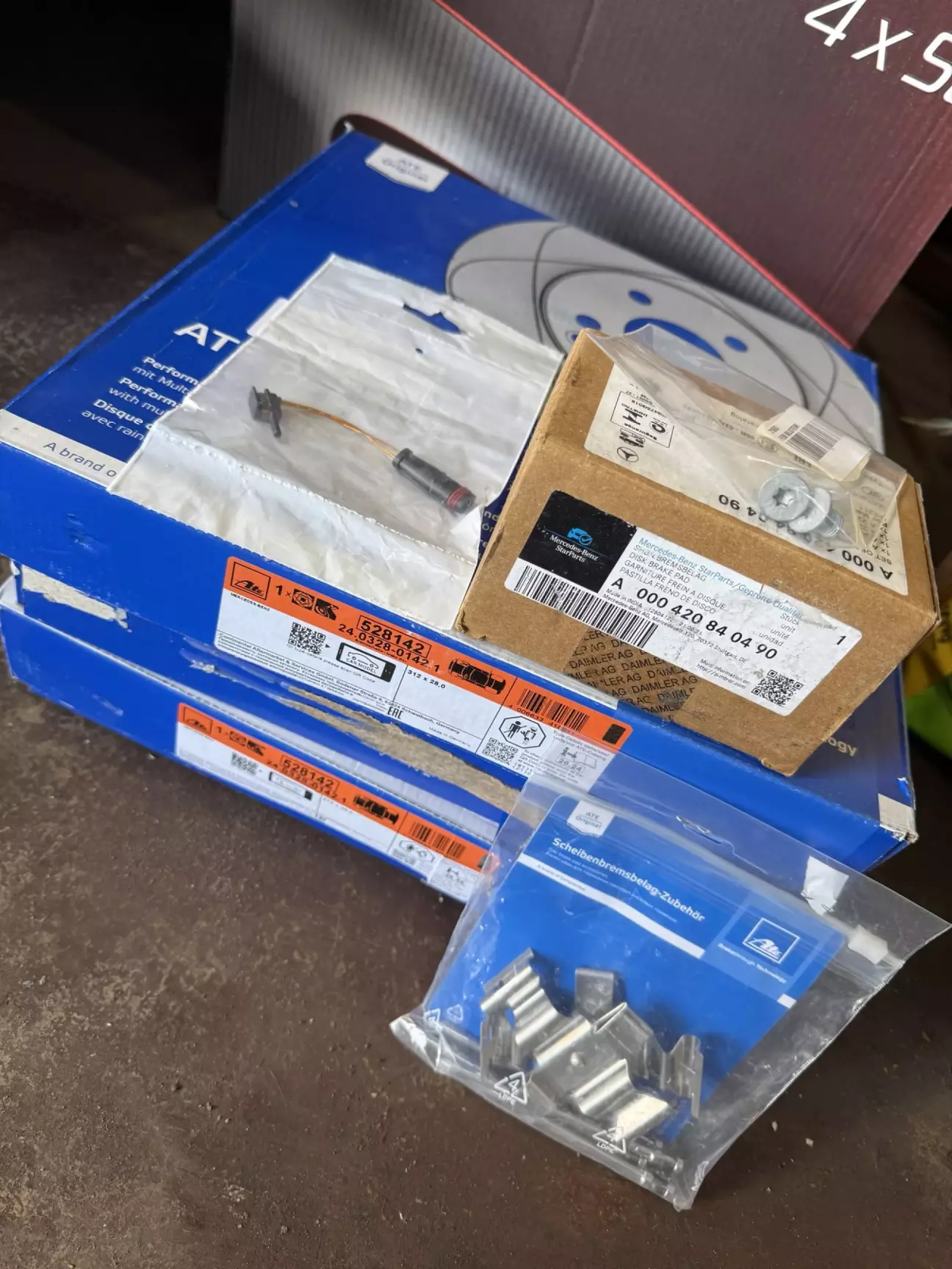 Додатково замовив монтажний комплект колодок, датчик зносу та монтажні болти до дисків(в комплекті недають).