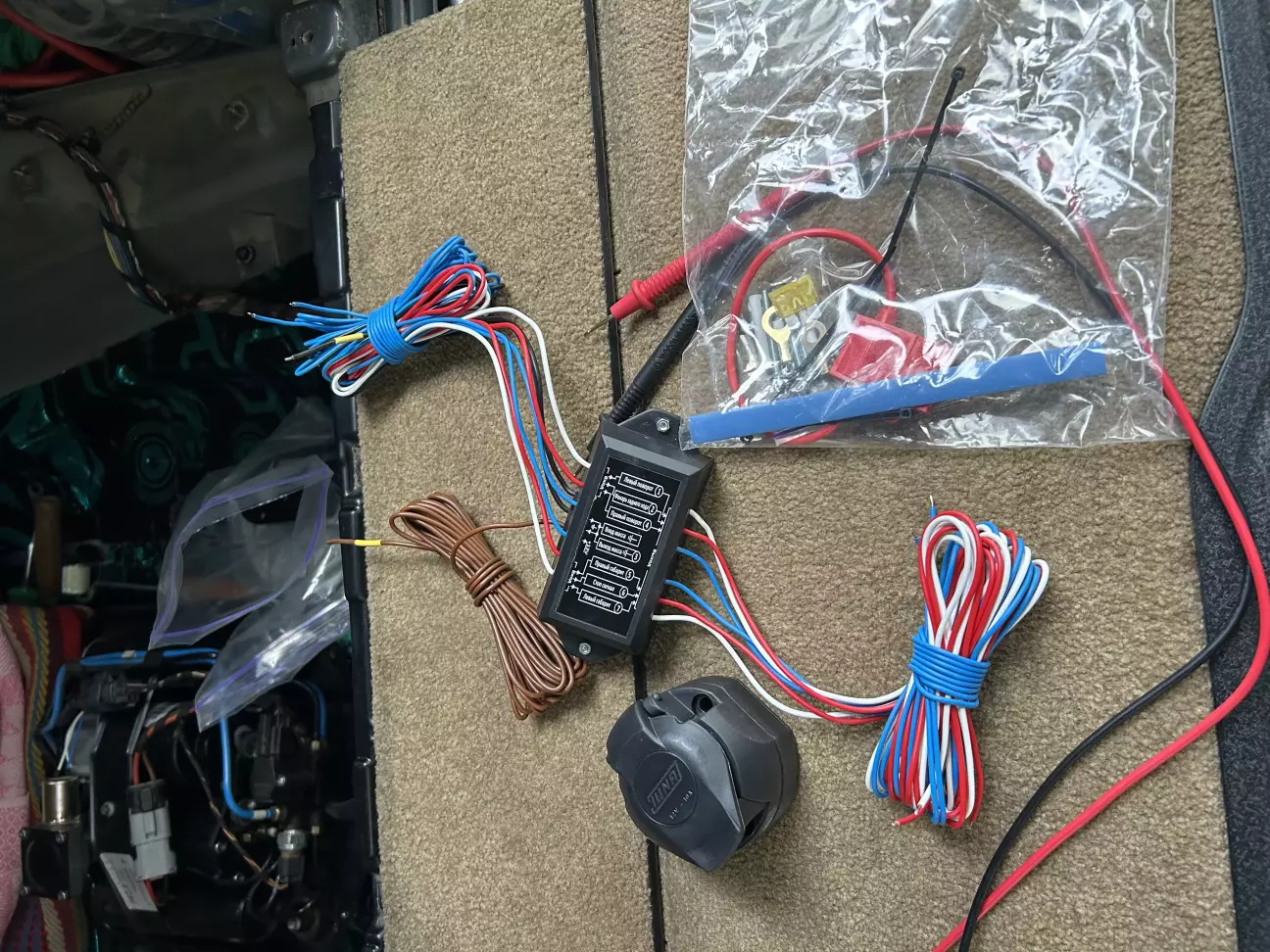 Далі підключив живлення для приспіву…. Підключається все як на багатьох «совржмєнних» авто через блок узгодження. В багажники в правому кармані під нього є місце,- але не поклали з заводу. Набрав шрот,- кажуть 100-$,- спасибі купуємо універсальний))
