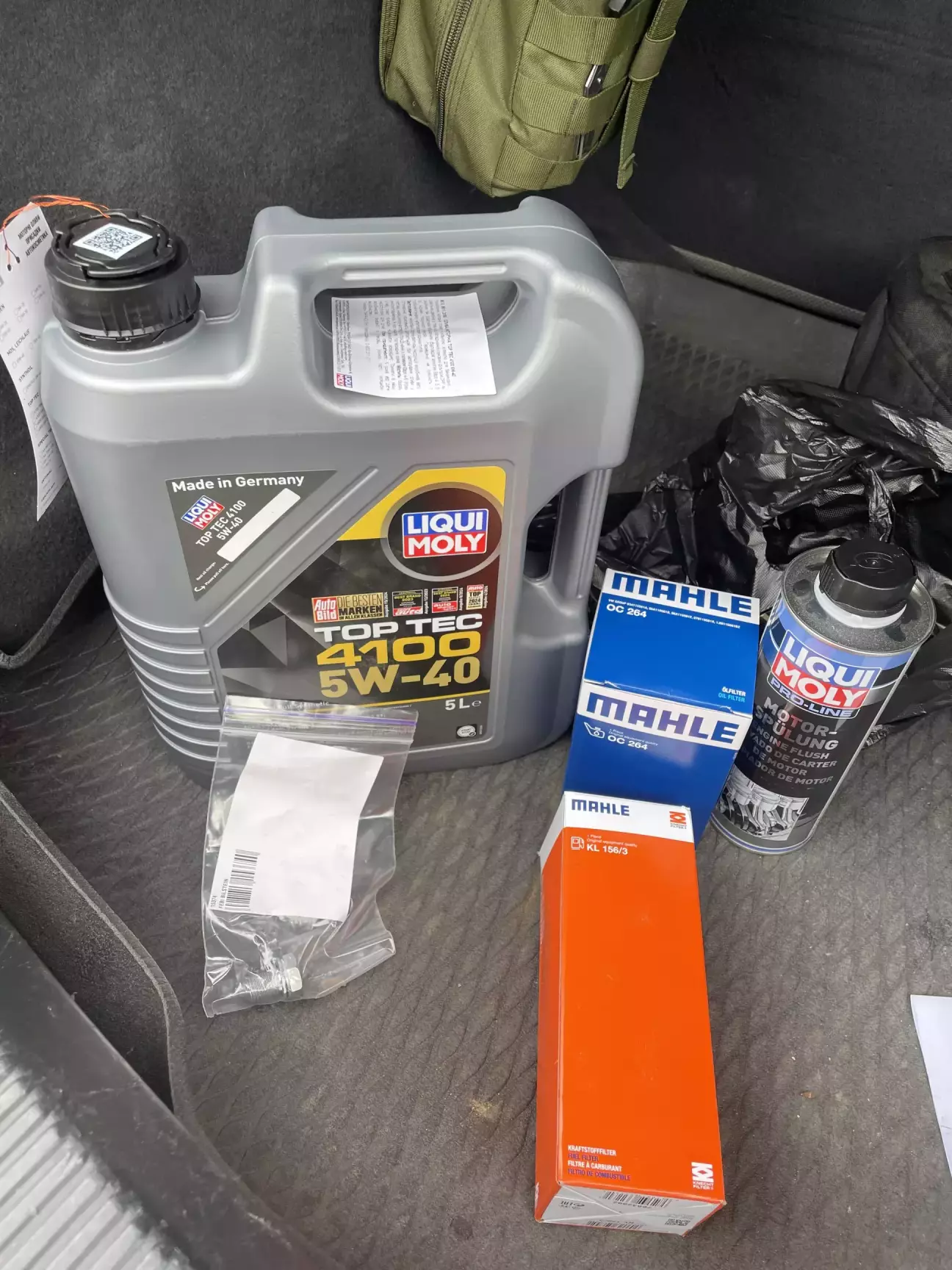Потім — старе масло в відро, новий фільтр Mahle на місце, і залив свіженьке Liqui Moly Top Tec 4100 5W-40.