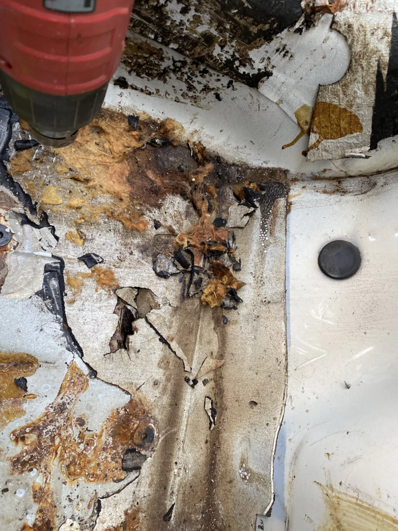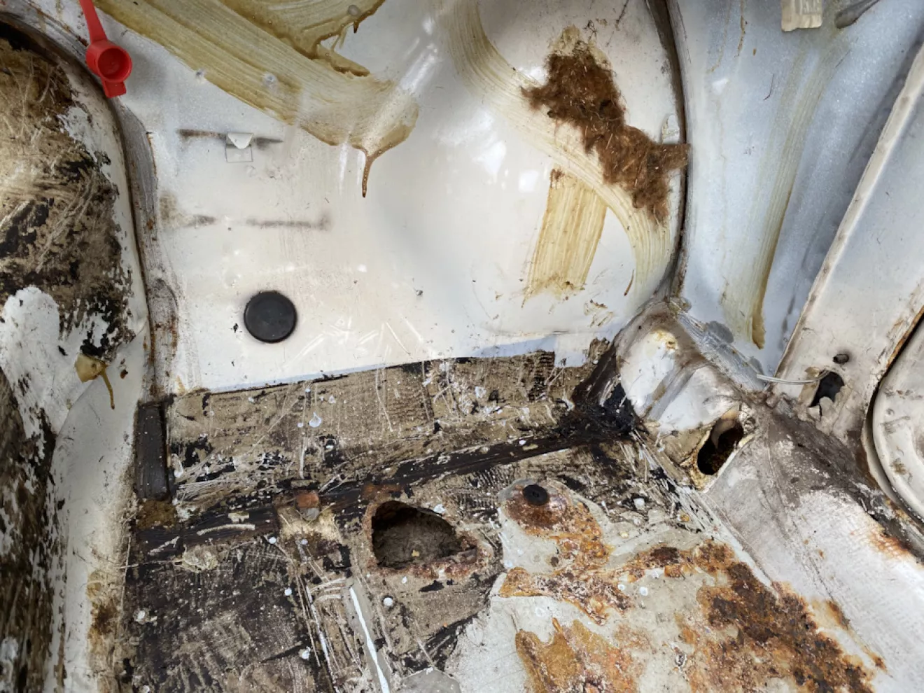 А снимая ноги переднего пассажира обнаружил дырочку в полу