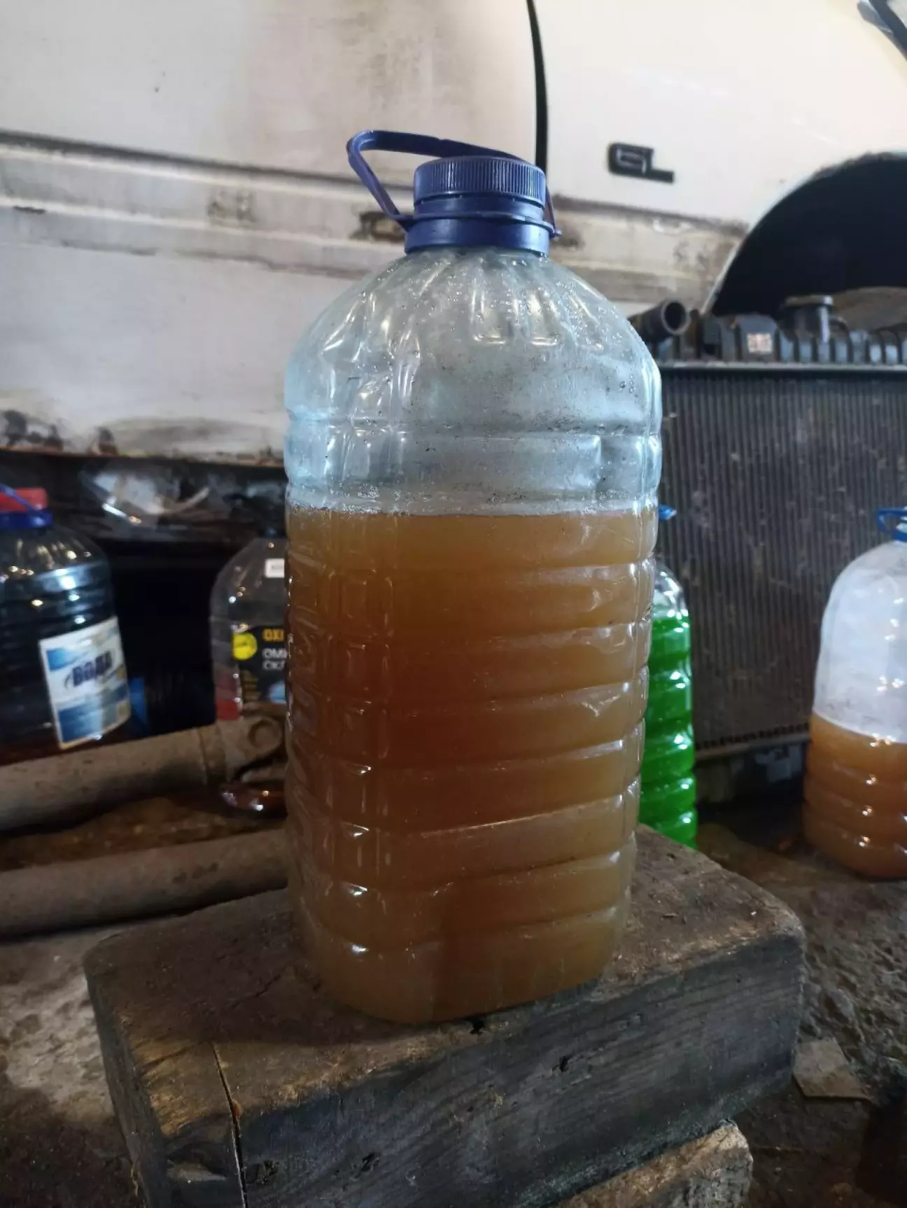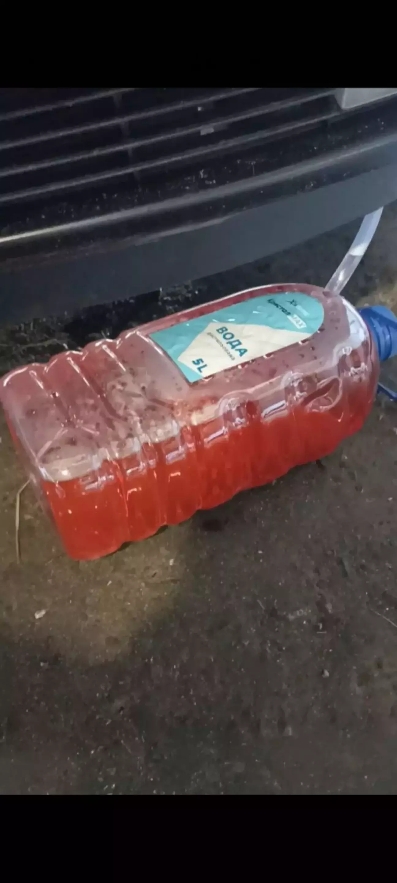 Слил его и занялся промывкой системы, потратил на промывку 2 месяца и 80л дистиллированной воды, применял и лимонную кислоту и промывку hi gear. Результата ноль. У меня осталось много фото бутылок со слитой жижей, несколько закину, для понимания. Постоянно рыжая вода, после лимонной кислоты, зелёная.