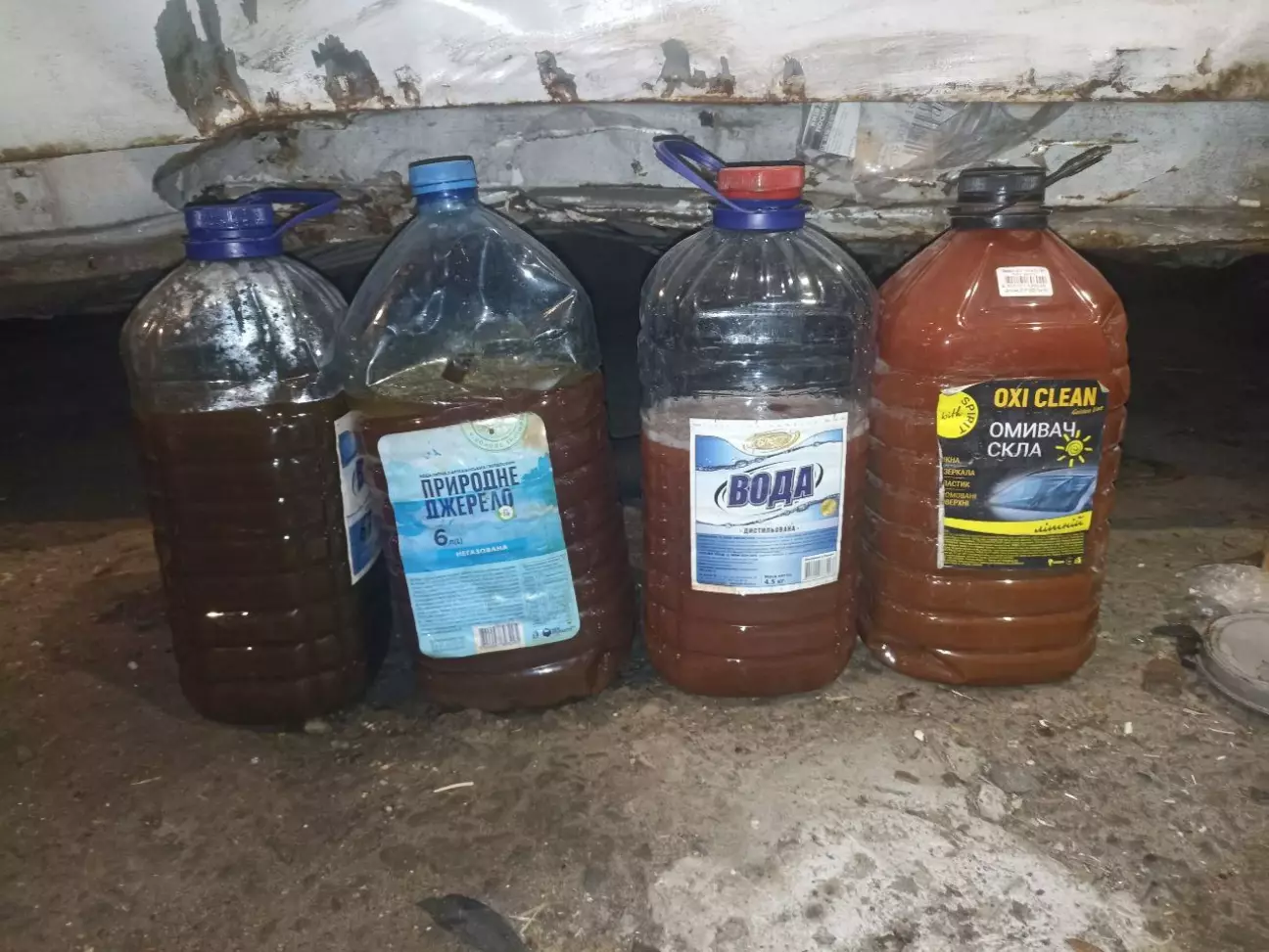 Третий(200км), видно что жидкость уже полностью прозрачная, но все еще имеется мусор на дне: