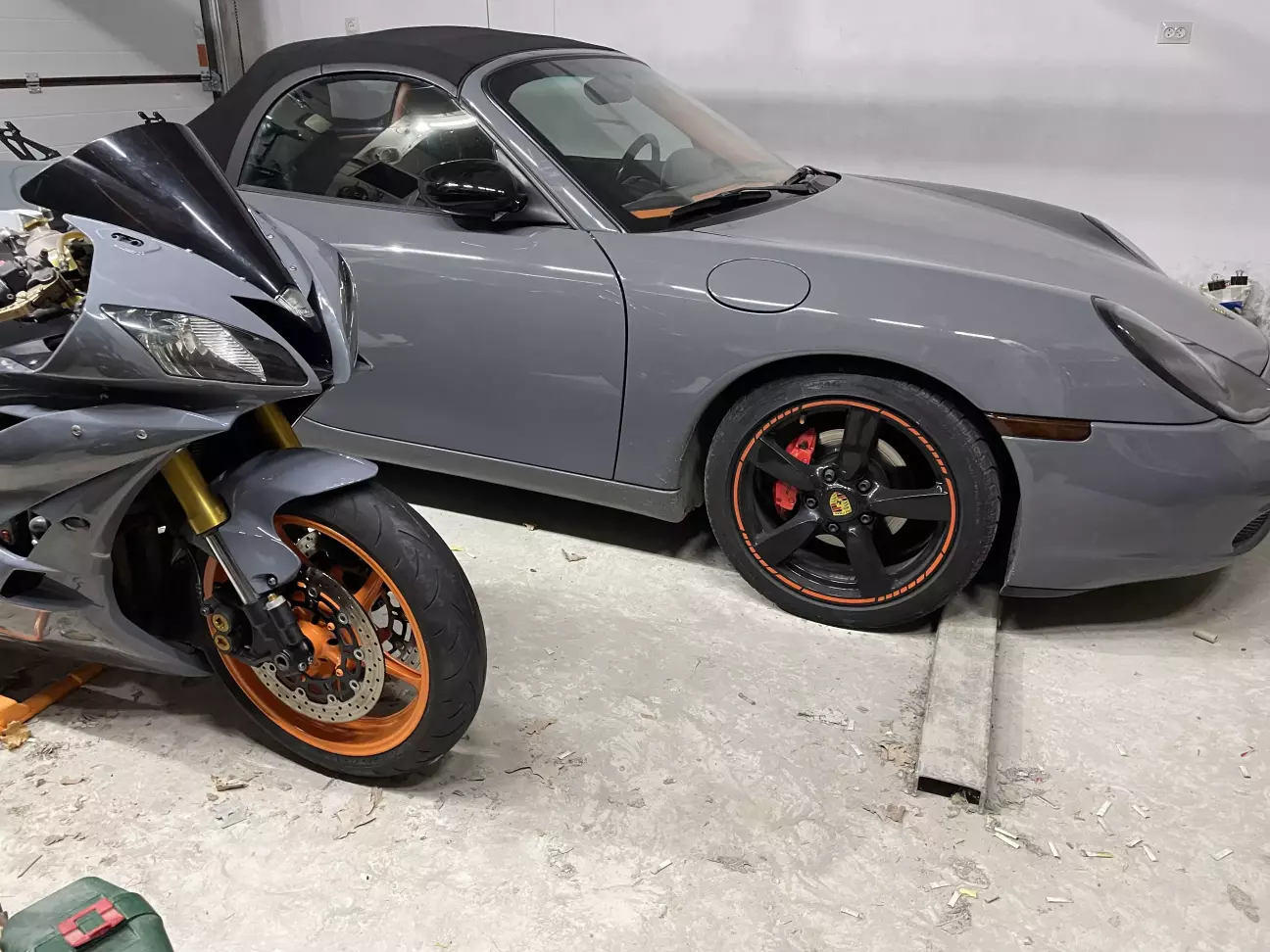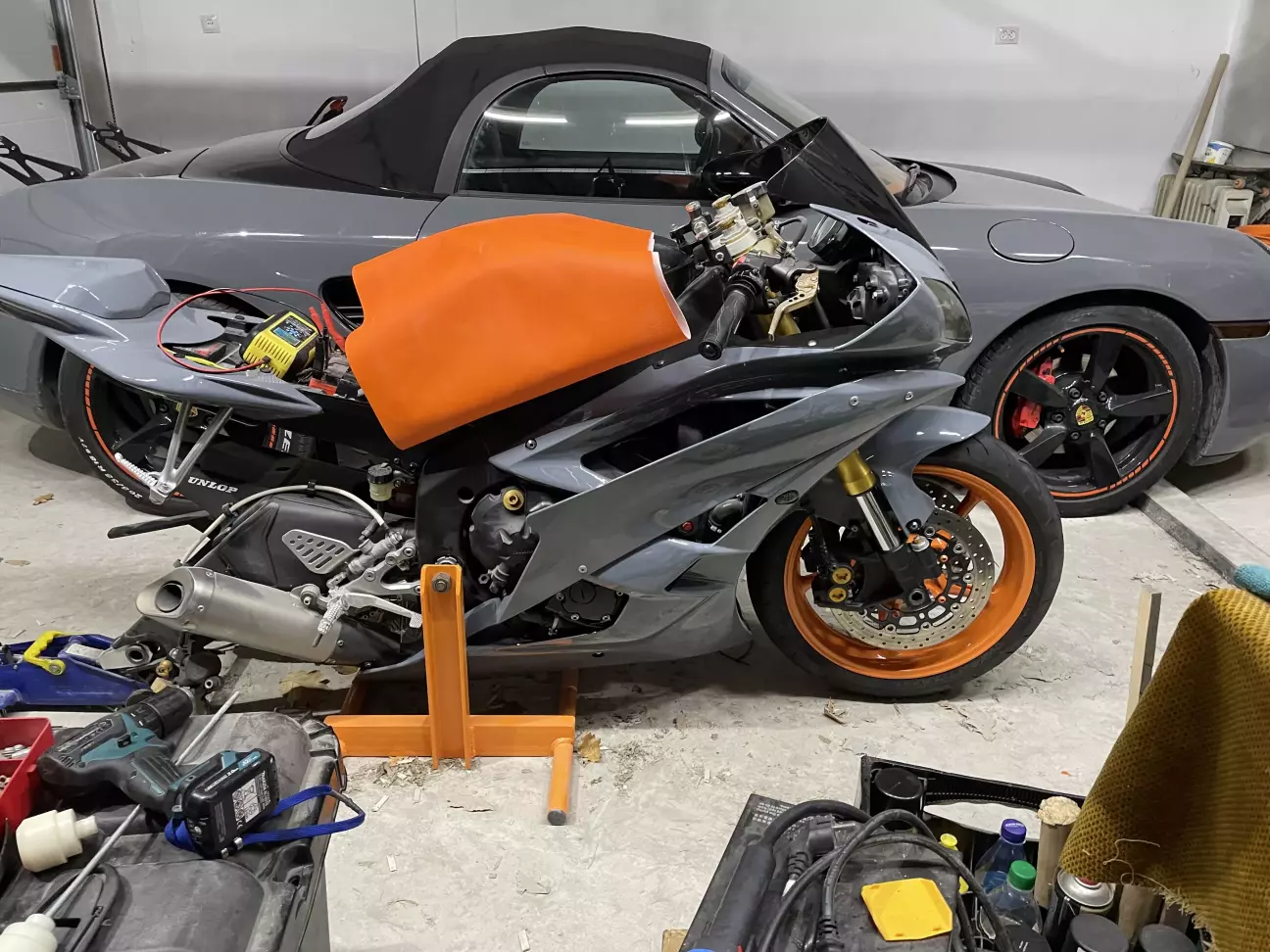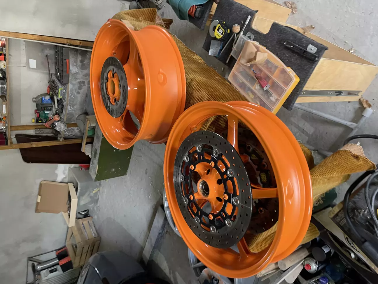 Спочатку подумав що треба прокатати диски та покрасити, тому стало питання як зняти два колеса з байка і щоб байк не валявся на боку ))