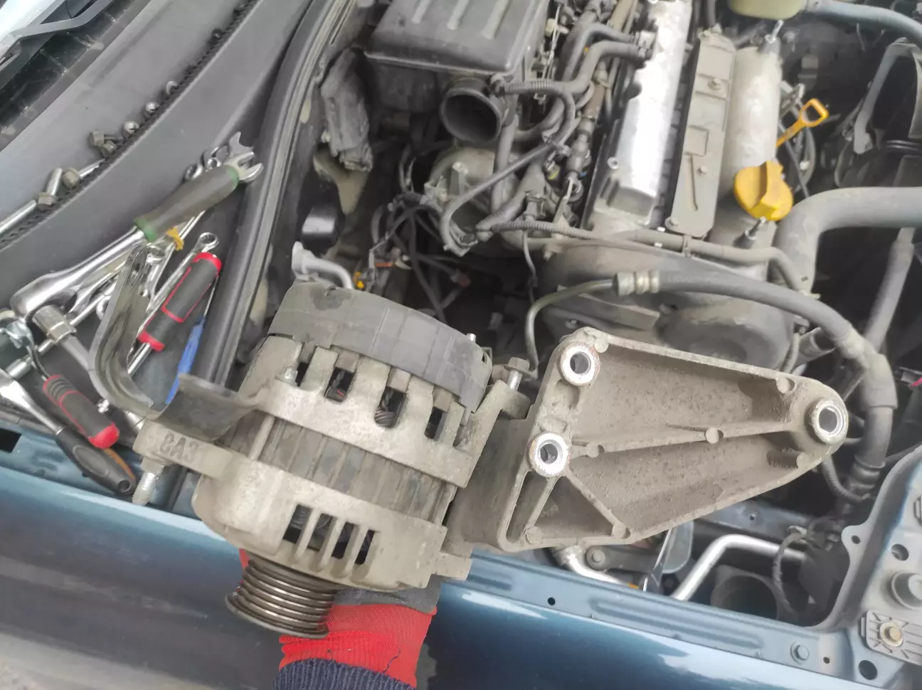 Зі встановленням нового генератора проблем не виникло, адже Макс підігнав все по місцю на "тестовому" двигуні. Півгодини - і новий гєна займає своє місце: