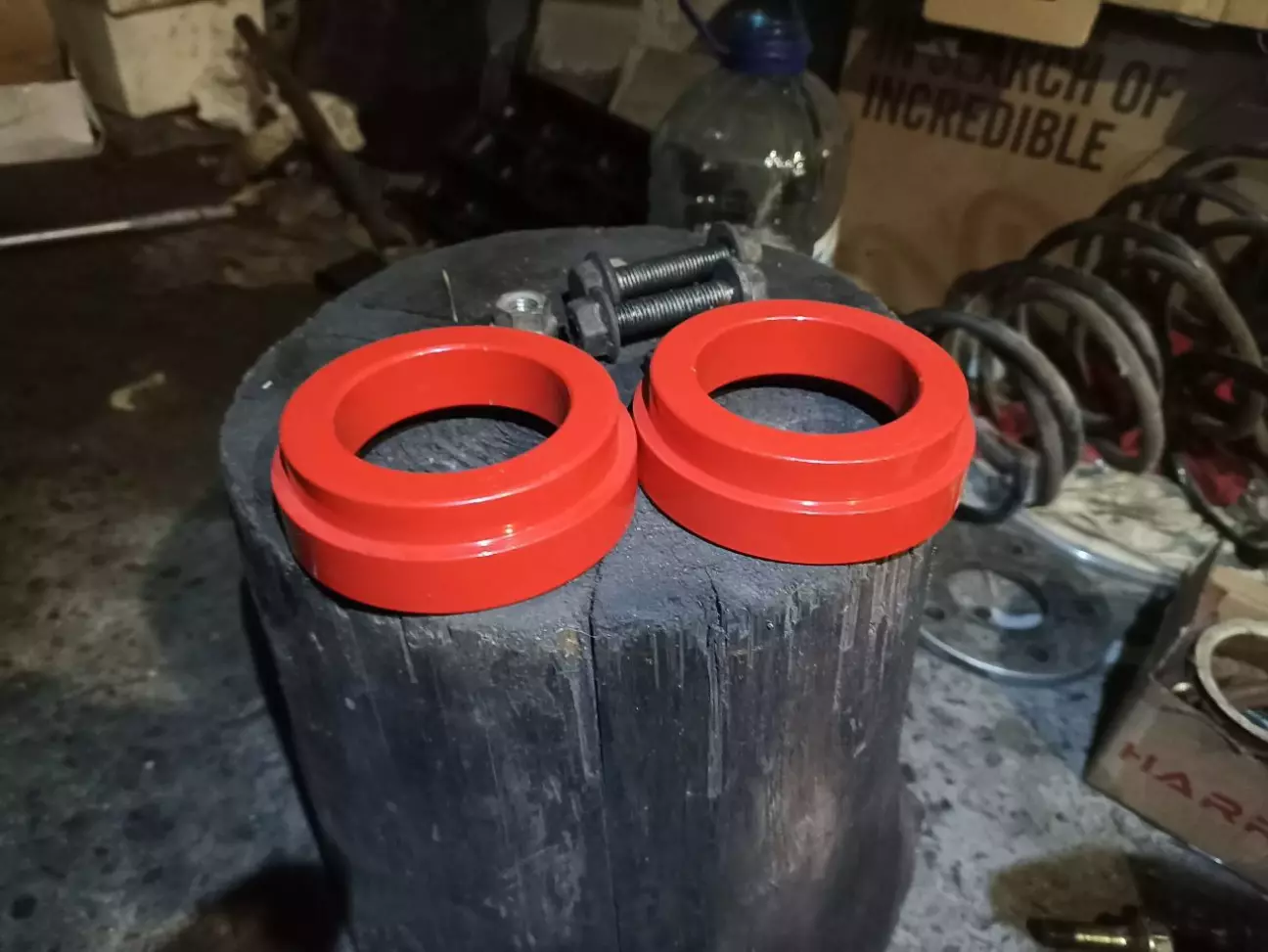 Задевало точно так-же на родных 17-х ЕТ39 с установленными проставками 10мм. Но с 17шками решилось просто сняв проставки. С этими дисками вариант либо ставить сток пружины, что не мой вариант, или покупать проставки для пружин:
