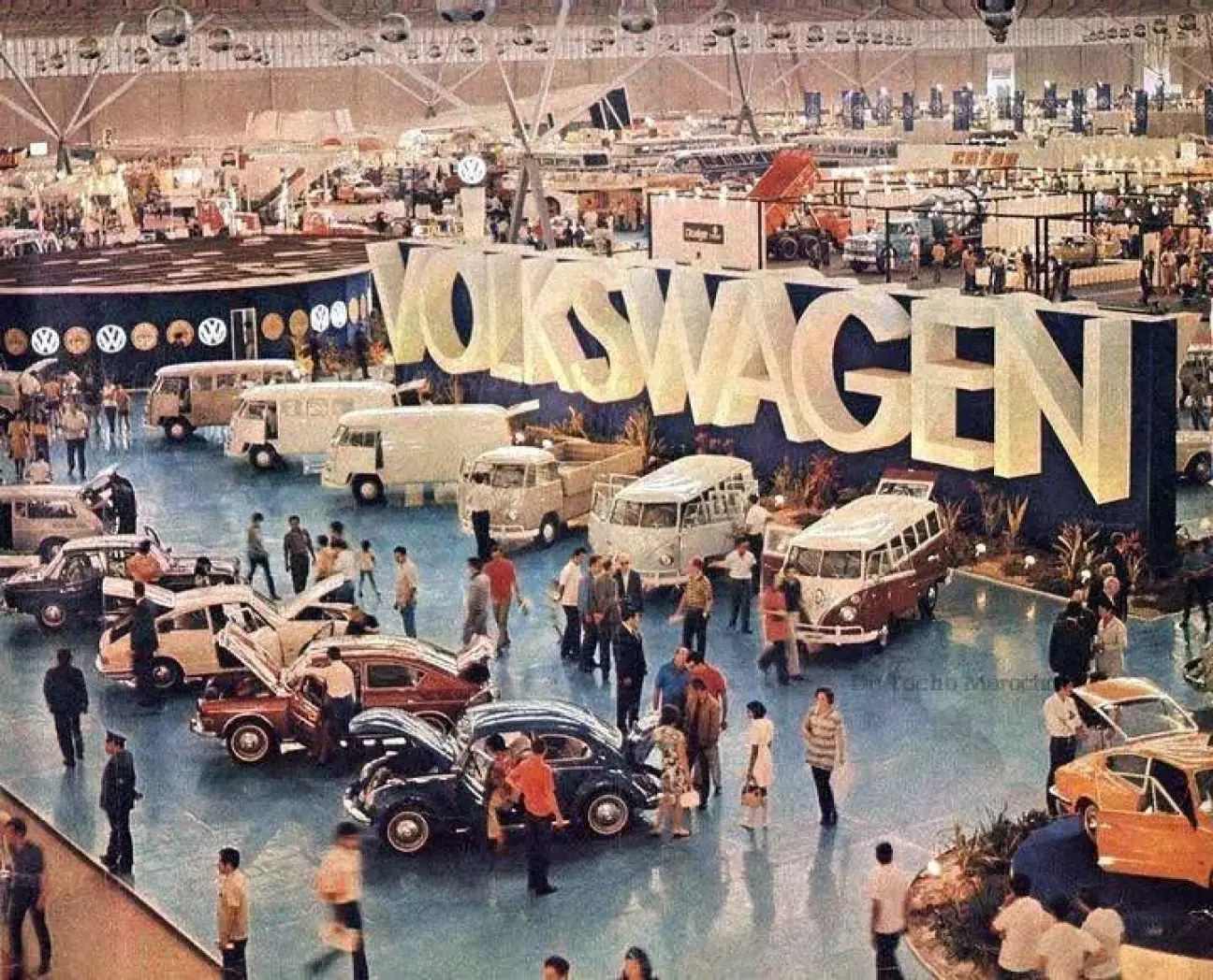 На цій фотографії ви можете побачити один із прекрасних моментів Volkswagen на міжнародних автосалонах. Були часи, коли Жук і Комбі починали ламати усталені схеми по всій планеті.
