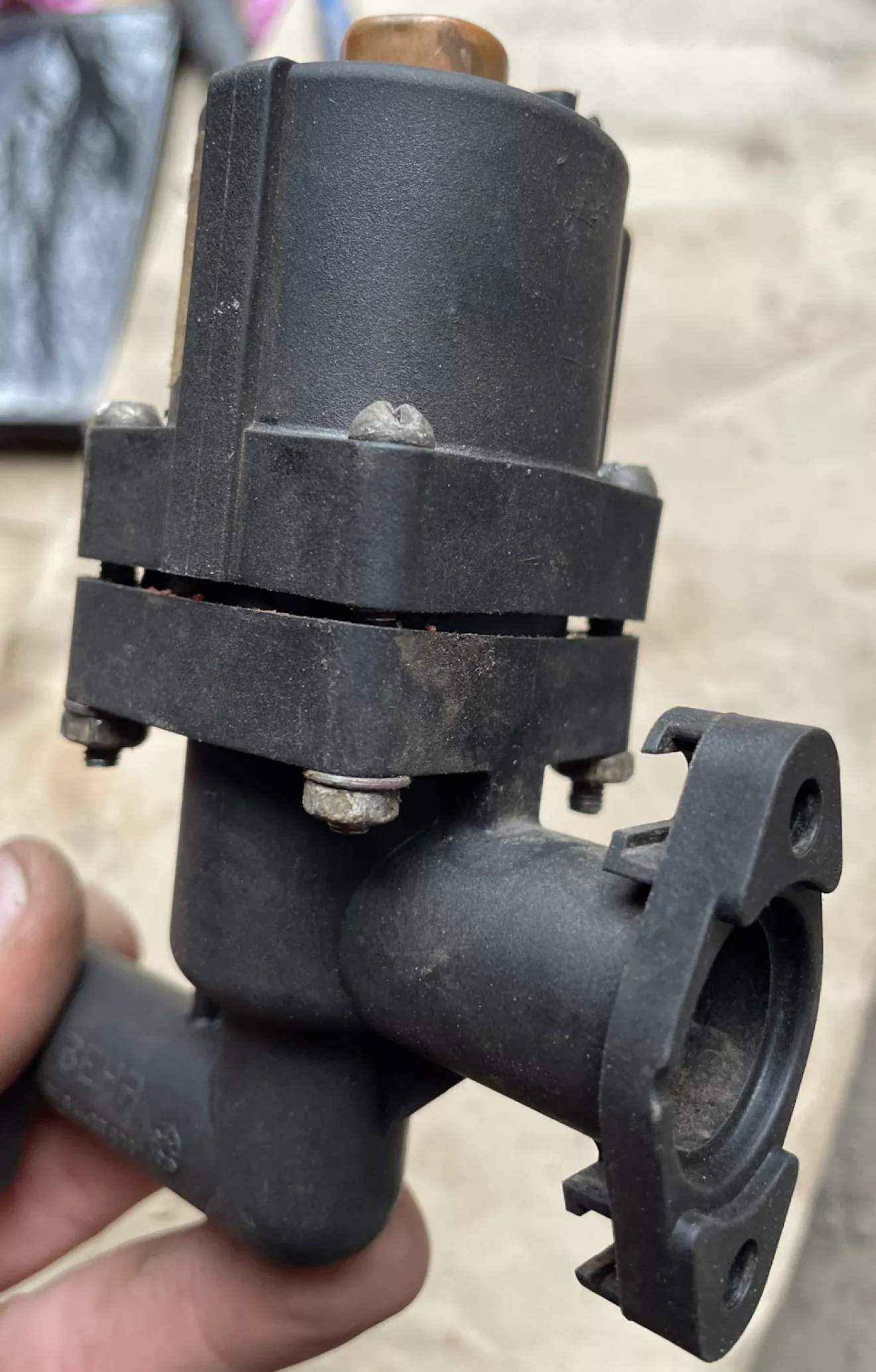Немного перегрелся и неожиданно принял поток кипящего антифриза себе на ногу, как оказалось лопнул корпус электроклапана, точнее просто корпус, тк сам клапан уже кто-то давно вытянул