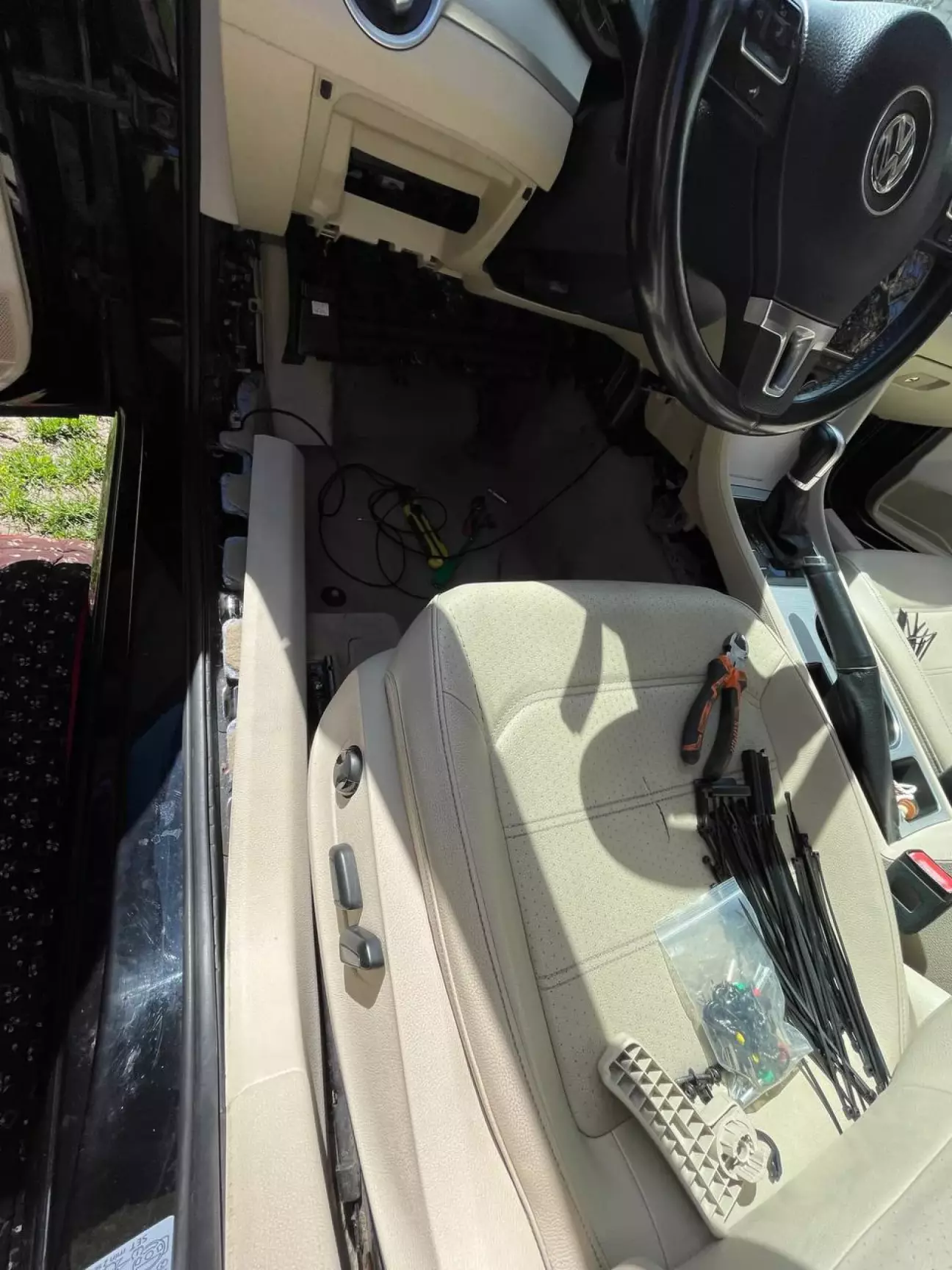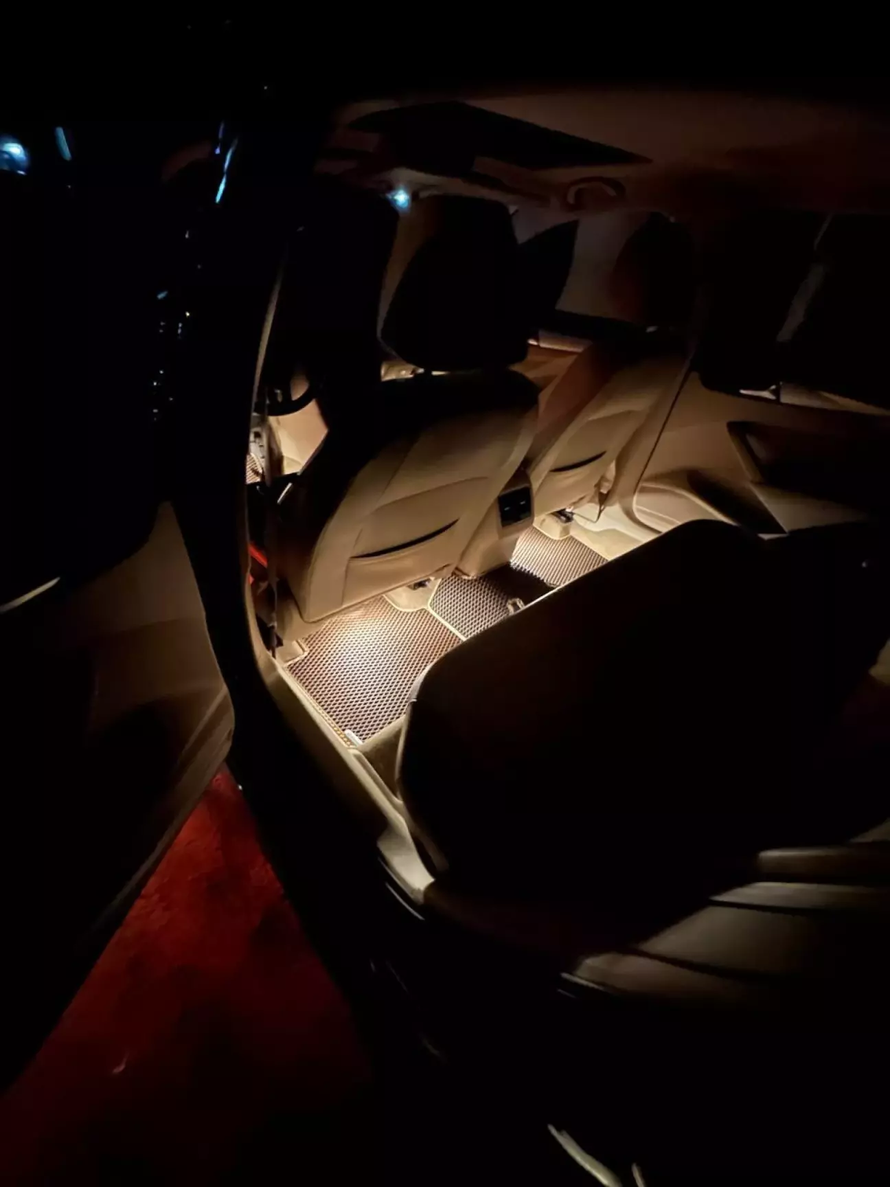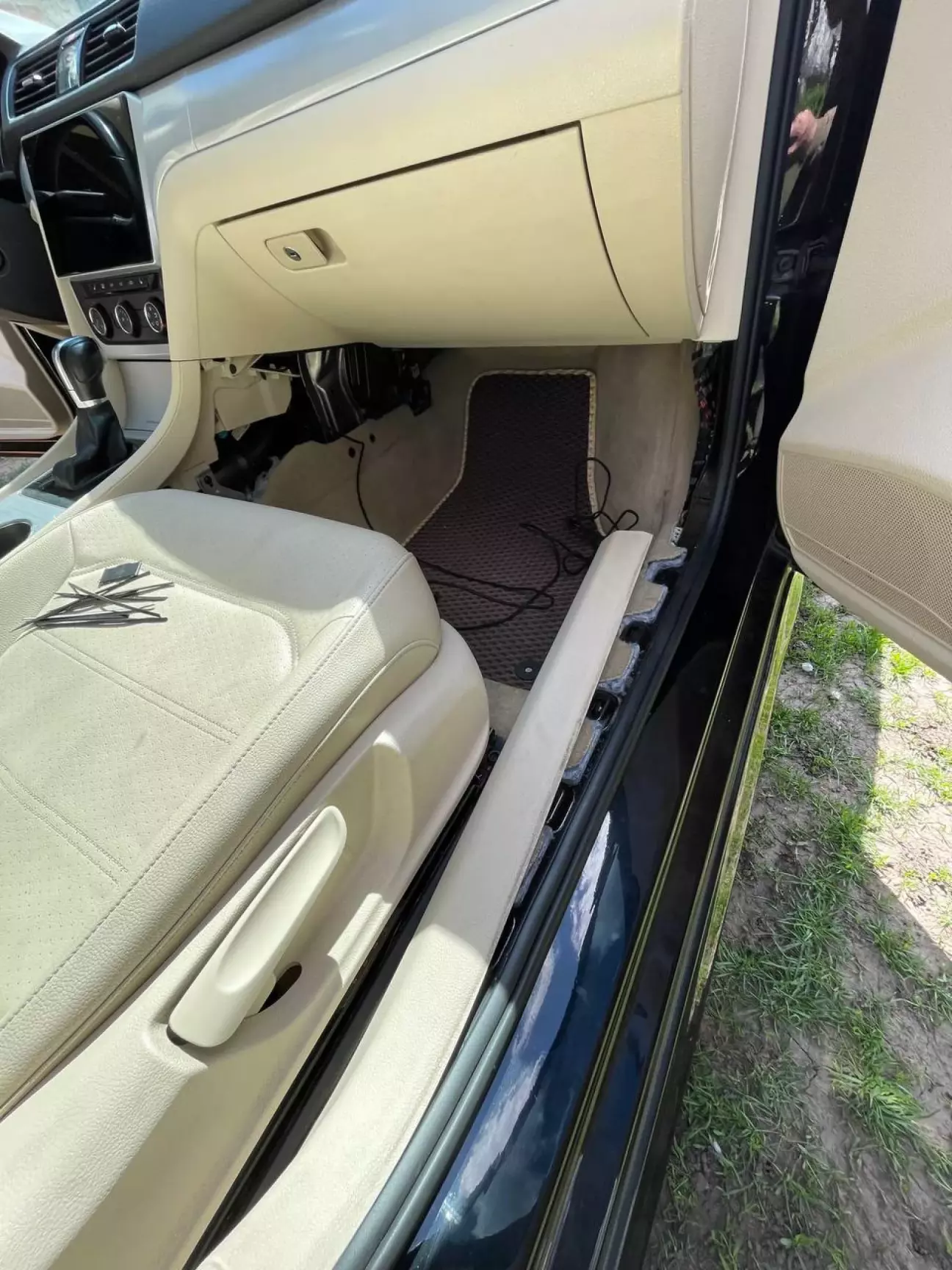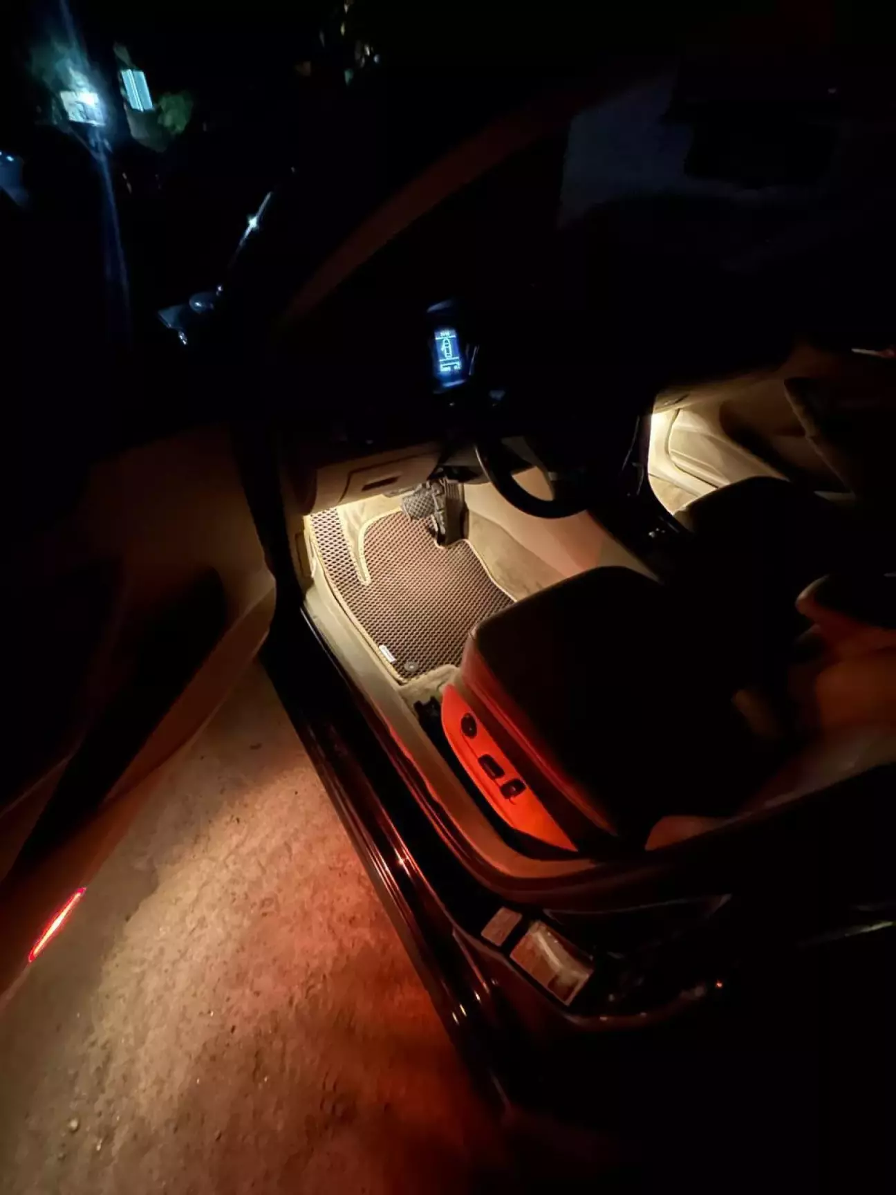 Розповідати тут особливо нічого насправді. В ногах є заглушки, які потрібно вирізати та вставити туди плафони. Попередньо, потрібно протягнути дроти по салону, під накладками порогів, потрібно запінувати дріт живлення нашої підсвітки в блок BCM(пін B50), масу причепити на кузов біля лівої ноги водія, де зніматимете накладки та в принципі по монтажу це все.