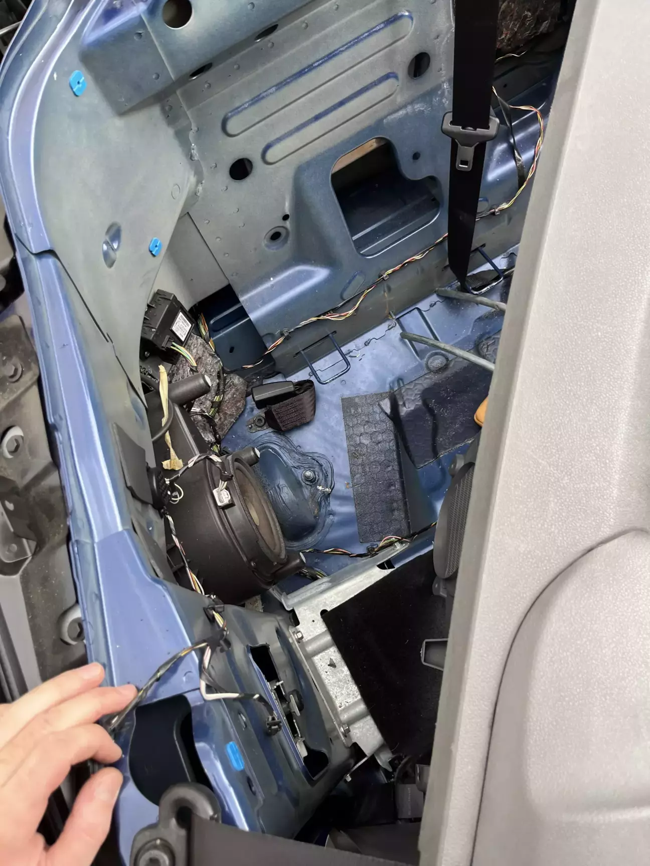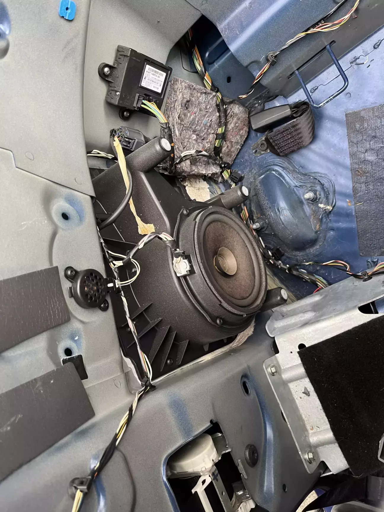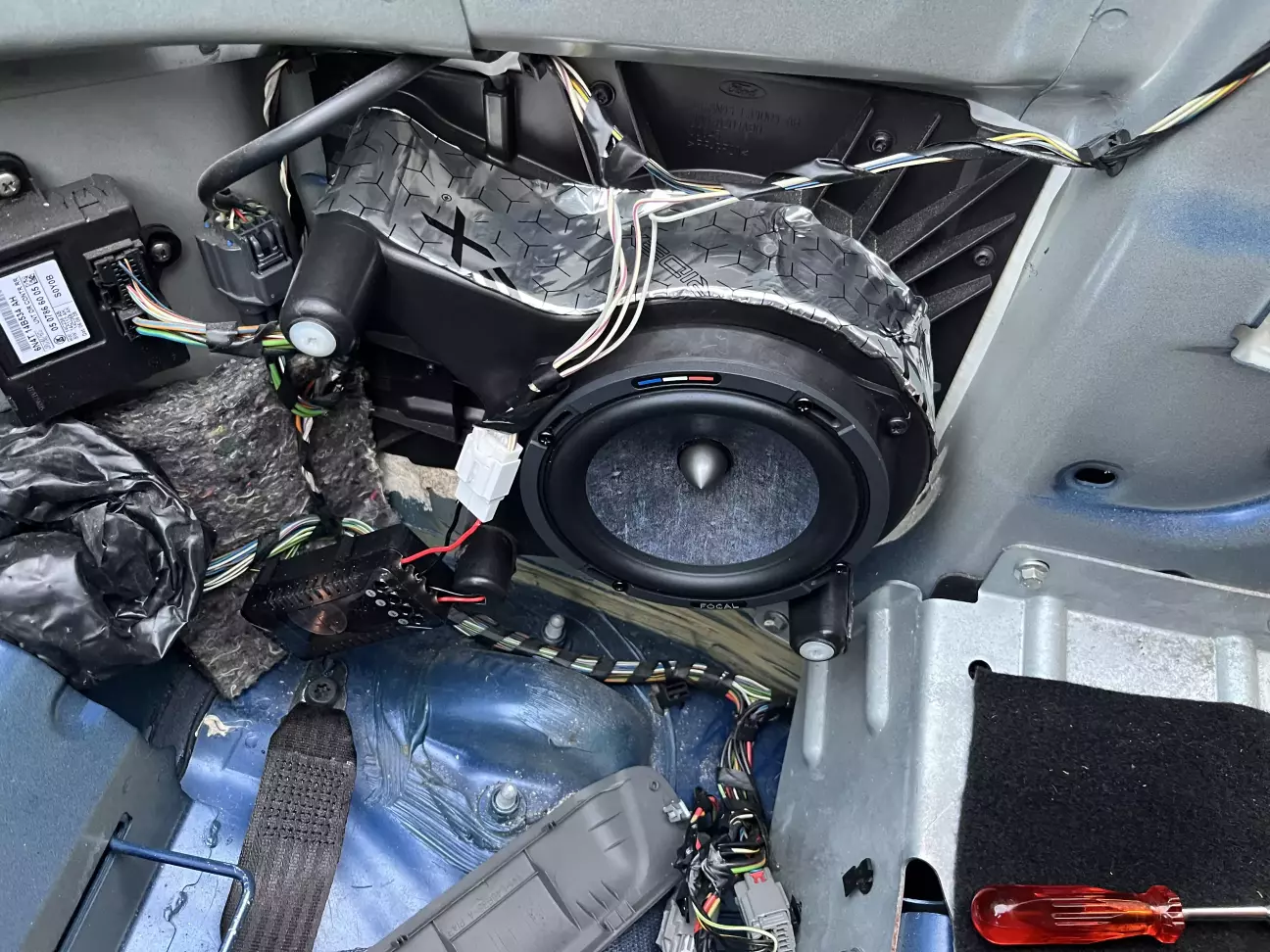 Дійшла черга замінити рипящий під вухо задній динамік . Фото робив на скору руку щоб передати суть . Знімаємо сидіння потім знизу спинку відкручуємо і відщолкуємо спинку . Для зняття боковинок в порозі один сховався шуруп і один за заднім пластиком там де безпека , всі інші видно і так . Відразу знімаємо розʼєм з кнопки скла і відтягуємо на ремні всю обшивку в сторону . Проставки з китая за 10€ з фішками в ориг проводку . Трохи вібри на боковини , трохи сюди туди - готово . Магнітола пару днів назад теж стала , 4/64 з чорною рамкою . Прикрутив не на всі саморізи так як твітера потрібно ще вставити а для цього в штатному заготовленому місті потрібно чимось зробити точний отвір , буде наступний пост. Тільки потім зможу точно сказати що таке Focal made in France . Ще в планах процеусь Helix , але то вже в наступному місяці так як гроші з неба не падають 😅