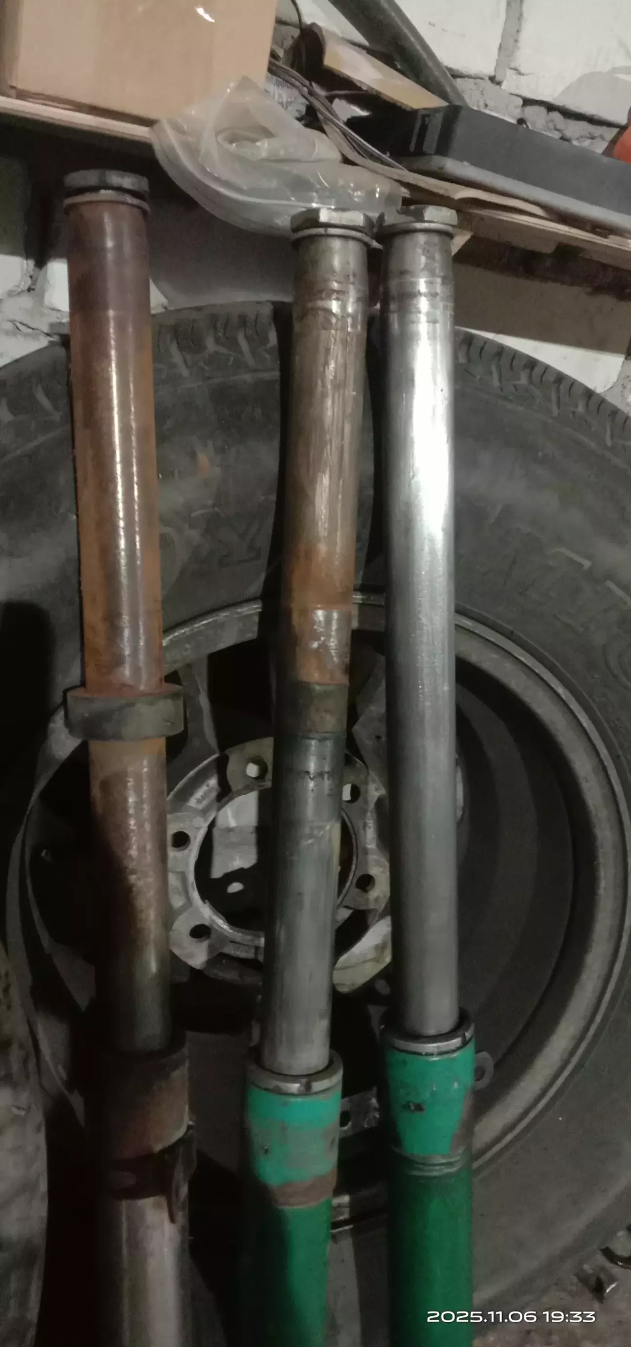 Работа потихоньку идёт.много время отнимает смывка краски и преобразователь ржавчины.хочеться нормально подготовить сегодня установил задний маятник с новыми сайлентблоками.перебрал второе перо вилки.