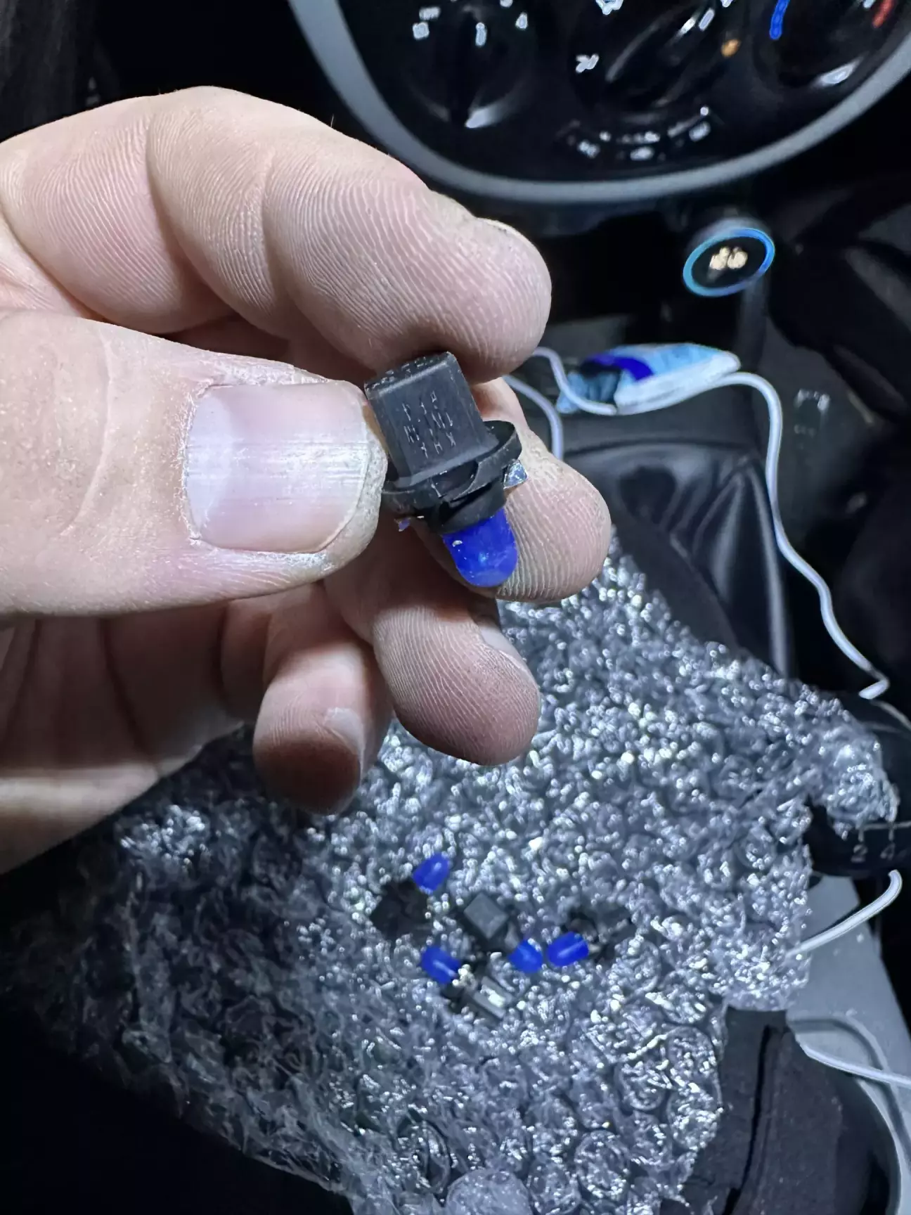 Начались поиски лампочек , взял оригинальные GM - 93745150 . Лампы с синим силиконовым колпачком , без понятия в чем отличия от приборок до 06 года . Предполагаю что там лампы идут с зелёным колпачком , точной информацией не владею .