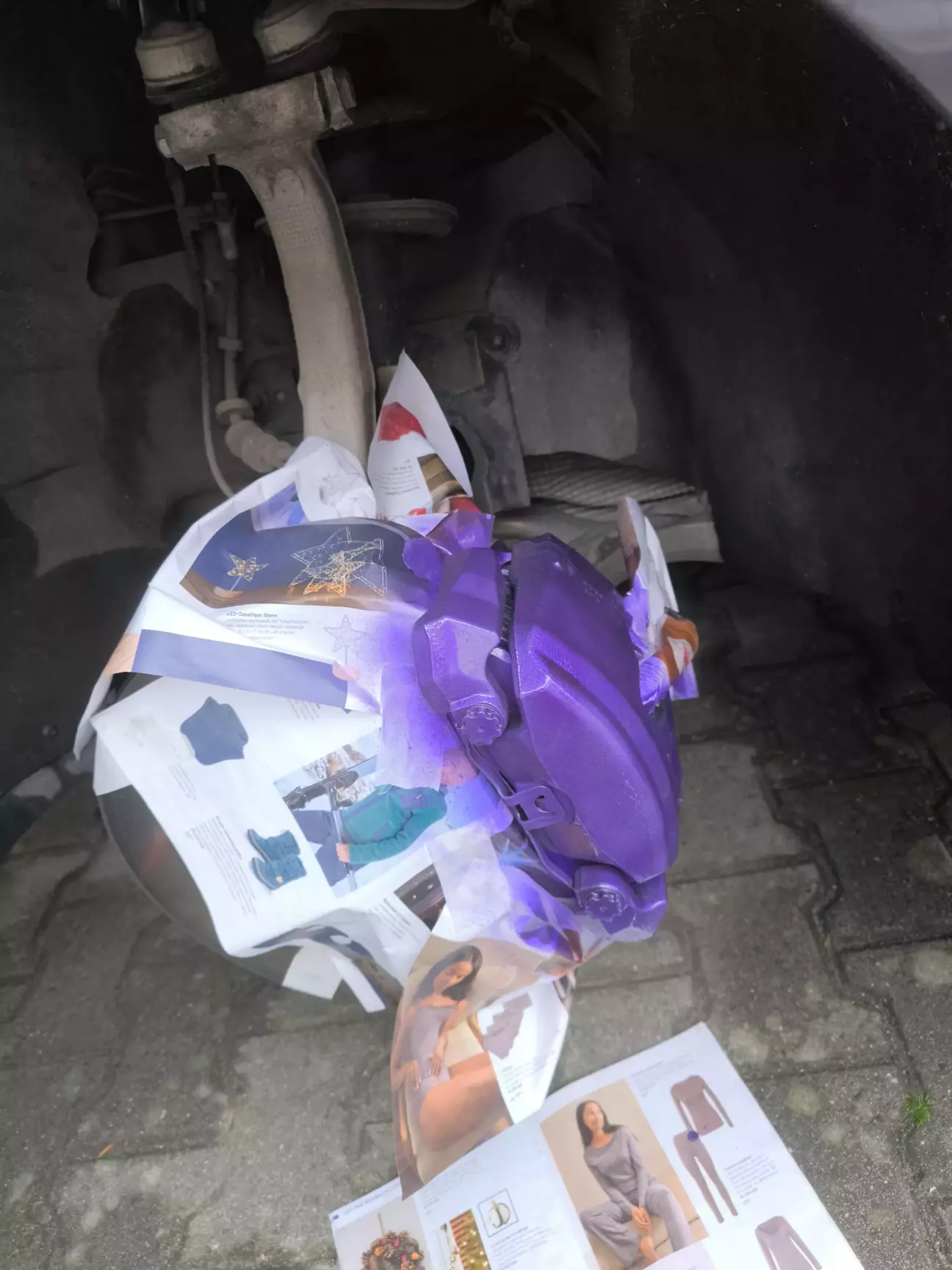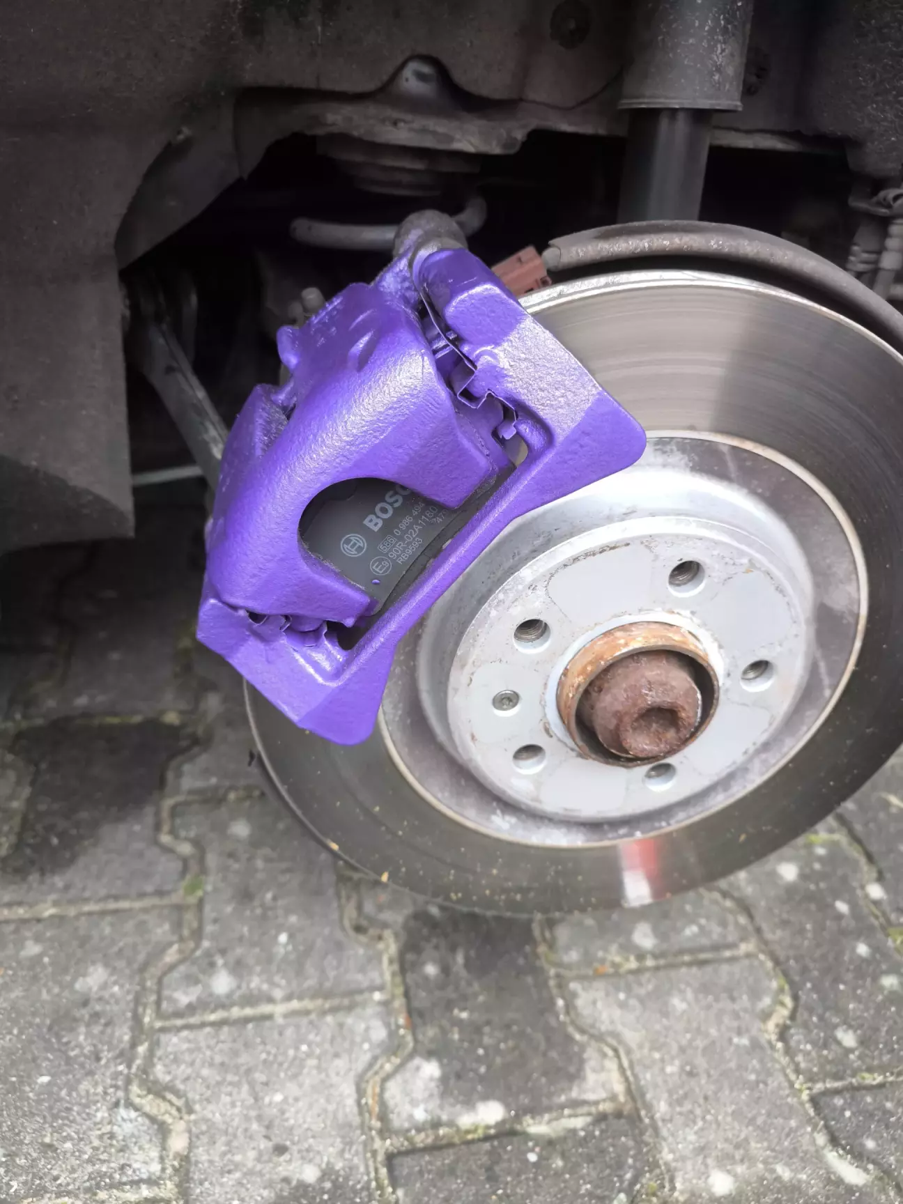 -Ну и покрасил суппорта в нормальный,мною любимый цвет,фиолетовый)))(по стоку были серебро,но по факту ржавчина и только сзади немного серебра)