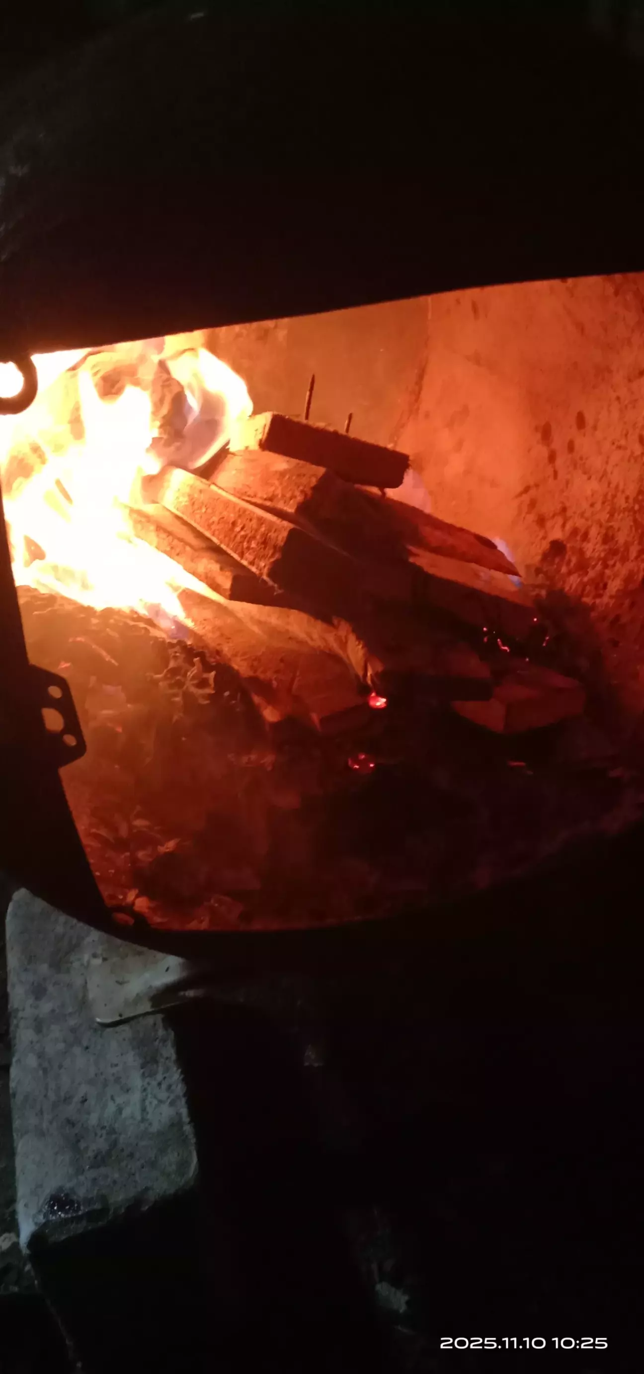 В гараже было сыро,решил проверить своё творение в виде печи.распалил,по началу дымело и воняло ,пока обгорел корпус бывшего бойлера.