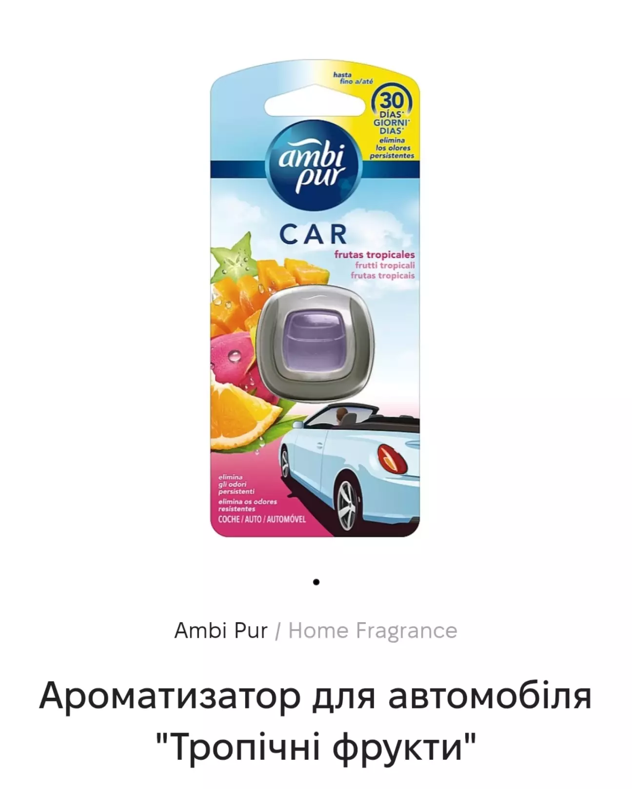 Купив Ароматизатор для автомобіля. Запах дуже класний, можу рекомендувати. Тепер авто чисте і з приємним запахом у салоні)
