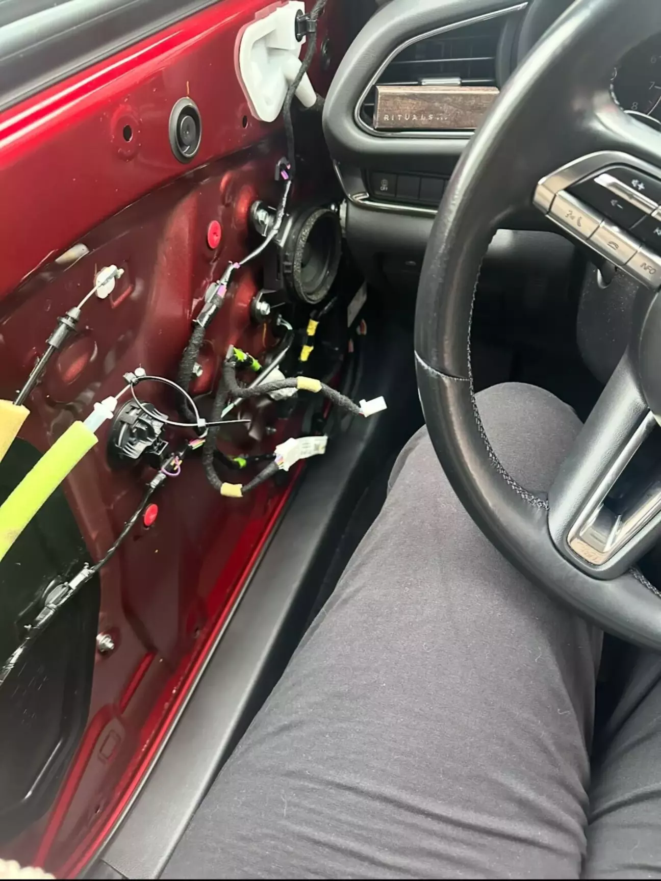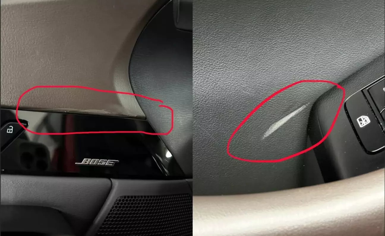 Почав з водійської двері, потім перейшов на консоль. Пішла я дивитись на водійську карту, а там пропиляний шкірзам та стертий інший елемент. Я на нього дивлюсь очами повного здивування/розчарування/бажання вмантулити..