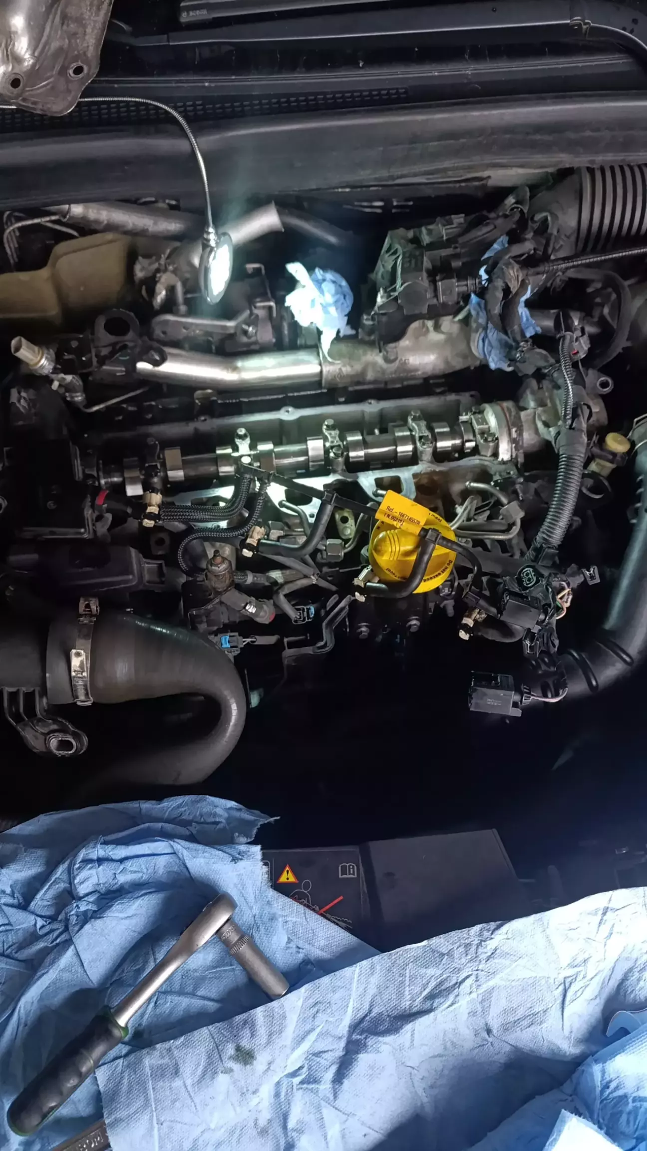 Чого тягнути кота за яйця... Замовив нову клапанну кришку орігу. Вона вже з прокладкою. І мідні кільця під форсунки. Термопасту та герметик https://shop.renault-kyiv.com.ua/product/8200629199-klapanna-krishka.html клапанну тут замовляв . Ціна найдешевша в Україні. Усього вийшло десь сто трампів на матеріали ну і 8 годин мого безцінного часу та роботи золотих рученят. Я вирішив ,що хочеш щоб було гарно - зроби сам. В неділю о десятій ранку почав розбирати. О 17 вечора двигун заспівав з новою клапанною кришкою. Роботи багато . Робив уперше такі дії з авто. Знімати треба дросель форсунки і пару кронштейнів відвести . В цілому жабоїди ще ті сучари. .. до цього був тігуан олспейс там все набагато простіше. В цілому не такий страшний "Наполеон" як його малюють. Зібрав все на місце я у два рази швидше ніж розбирав. Не обійшлося без злизаних болтів ... Мати їх так... Попили кровушку. Та при першому запуску прорвала одна із фосунок- не прожав кляте кільце мідне . Бо болти форсуночні одноразові а я що , нафіга мені гроші витрачати. На старі прикручу. Ну от і побоявся сильно тягнути.... Але все вирішилось доворотом на пів оберта болта. Двигун заспівав. Я радий сцю кіпьятком. І між іншим у Харкові за цю роботу беруть 3000 гр. Так що кіпьятком сцить і дружина бо я зекономив сімейний бюджет.