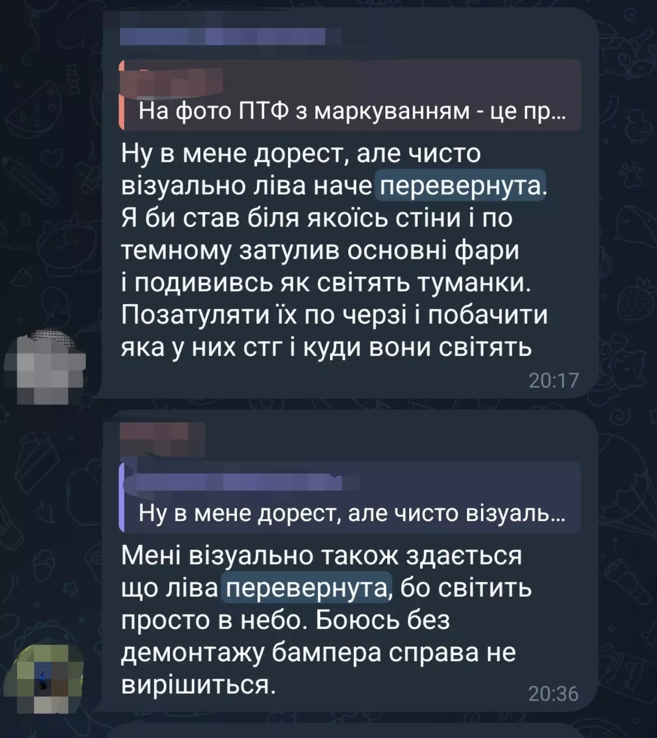 Зразу скажу - технічно все було справне в ході огляду. Але був неочікуваний неприємний нюанс - одна протитуманка лупила вверх. При чому настільки сильно вверх що ми не зразу зрозуміли де головний пучок світла. Поки не подивились вверх на дерево. Я забирав машину біля сервісу, хлопці при мені підрегулювали фари. Коли перейшли до туманок, зразу стало ясно що щось не так. Ми глянули на одну і на другу.