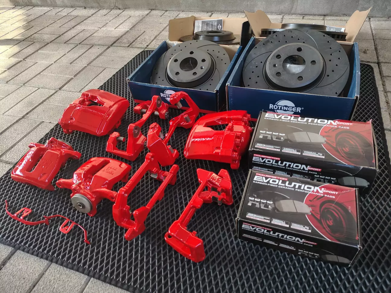Всем доброго дня, была произведена полная ревизия тормозной системы, покраска суппортов, покраска дисков.