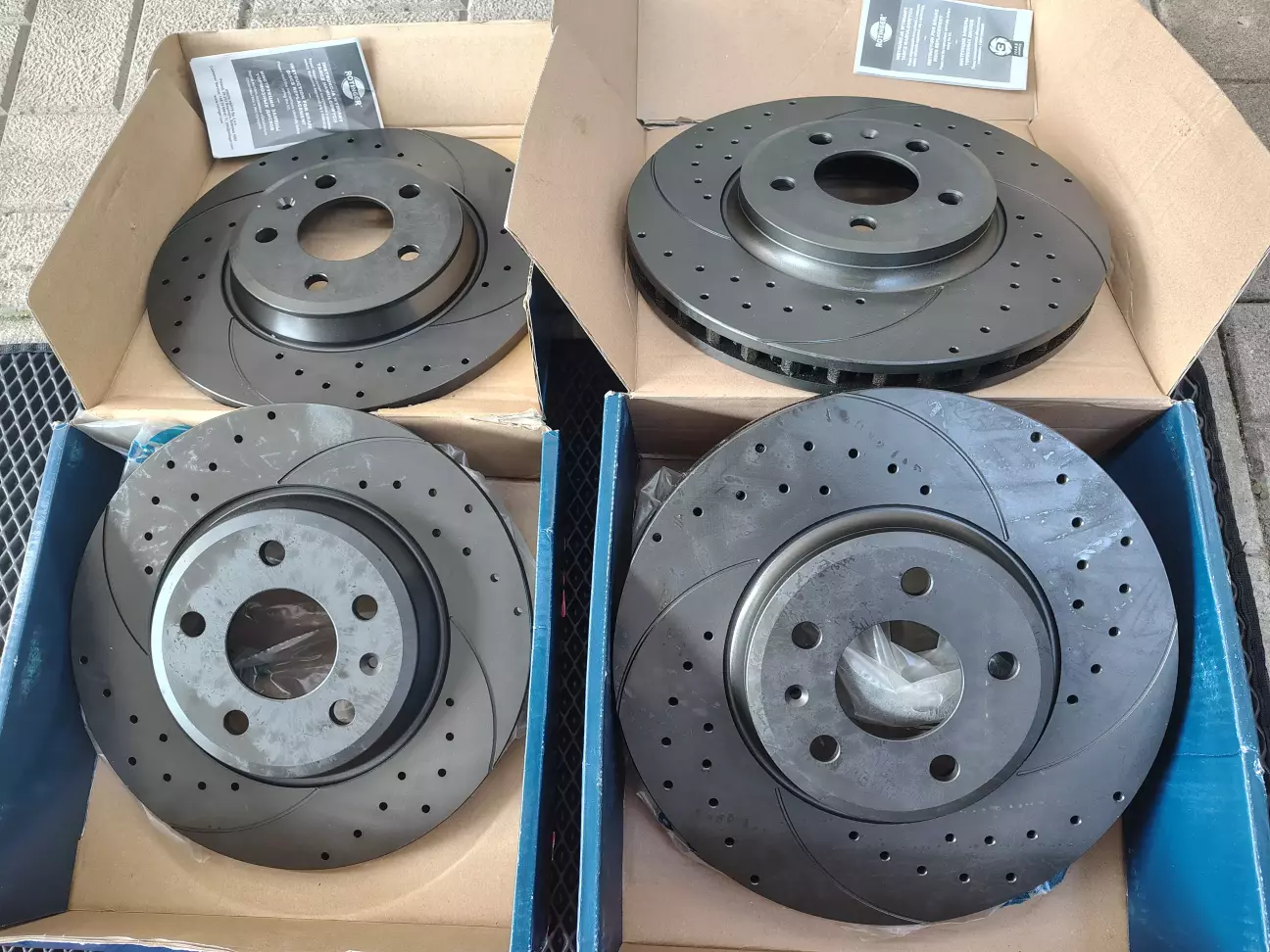Замена тормозных дисков на Rotinger с перфорацией и насечками.