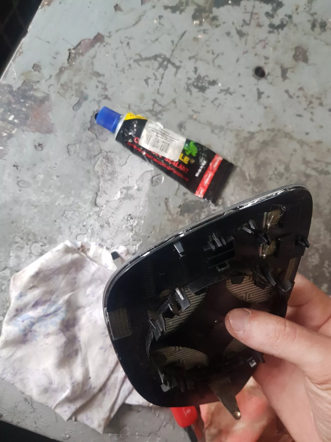 Заметил что при езде начало трястись зеркало, не долго разбираясь понял что отклеелось зеркало от пластиковой защёлки. Почитав решения проблемы, понял что легкотня, и понеслась. Снял зеркало а там почти полностью отпало. Крокодил в помощь, тоненькая отверточка, нормально з запасом намазал, покругу закрепил оставил на сутки, и уже на следующий день всё готово. Проблем больше нету.