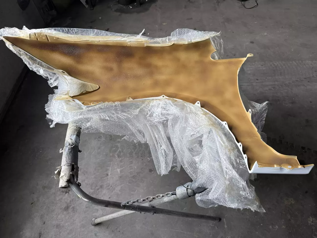 Фарба була знята повністю до металу, погрунтовано, де потрібно підшпакльовано ну і пофарбовано
