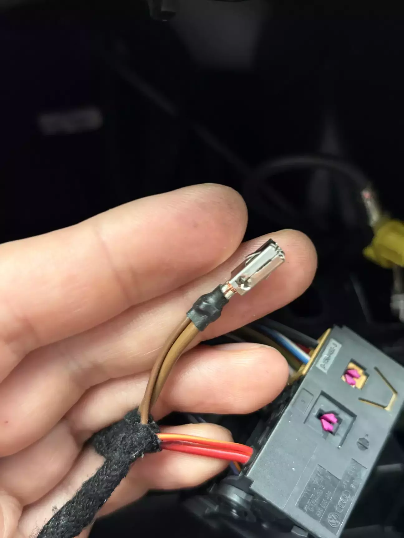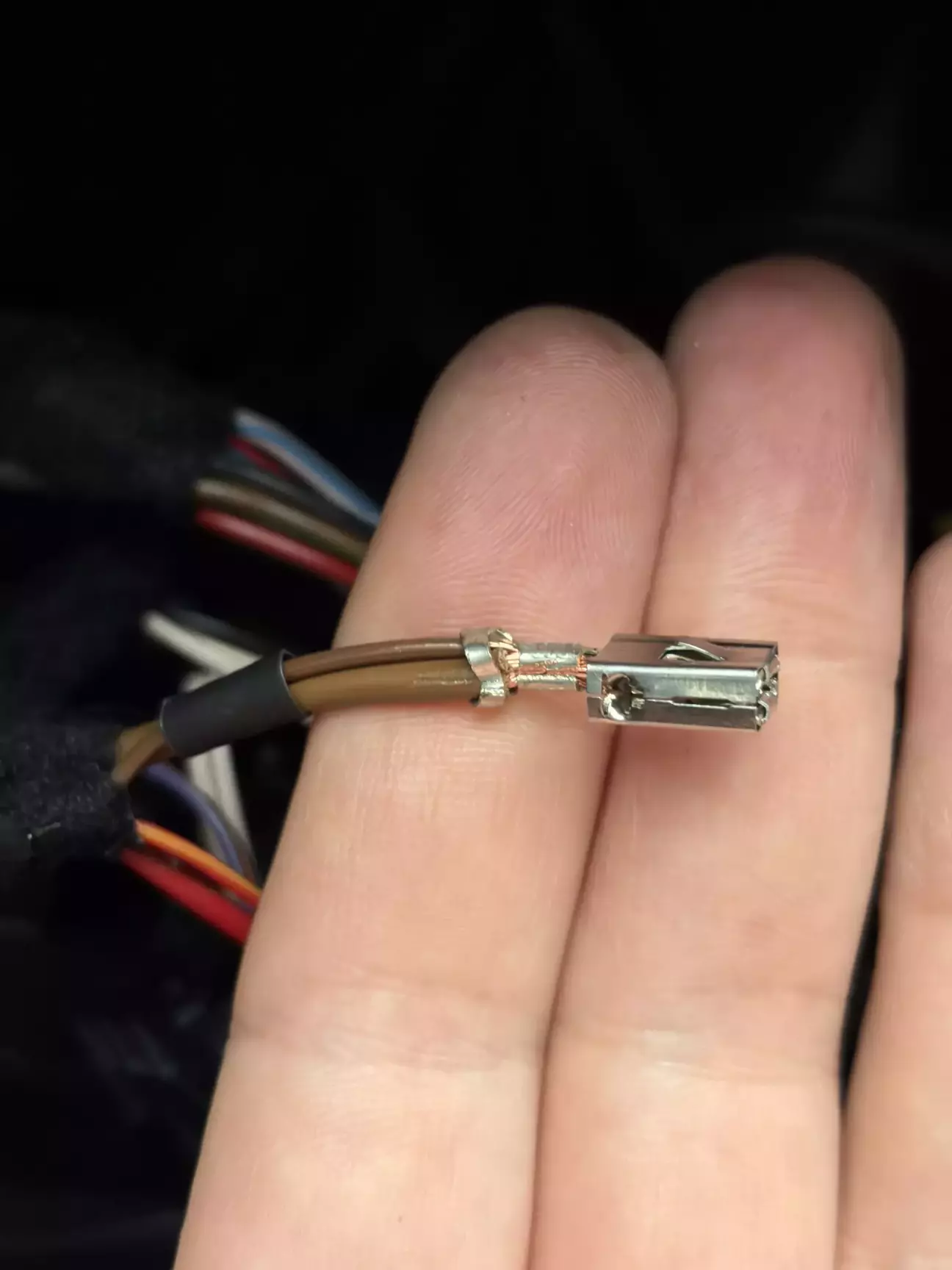Далі переходимо до підключення живлення дисплея з фішки юніта. Для цього використав червону (плюс) та коричневу (мінус) жили. Розʼєми купував на АЛІ тут.