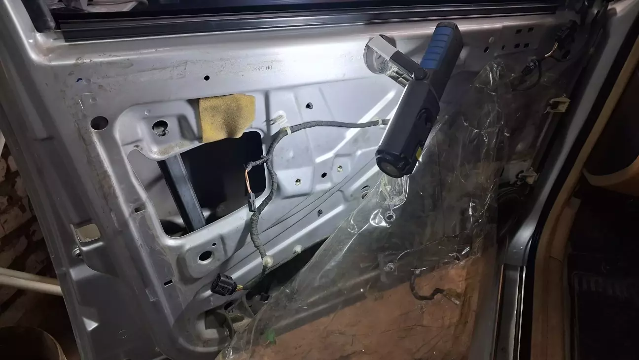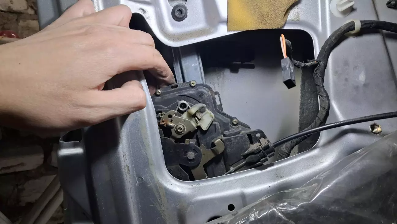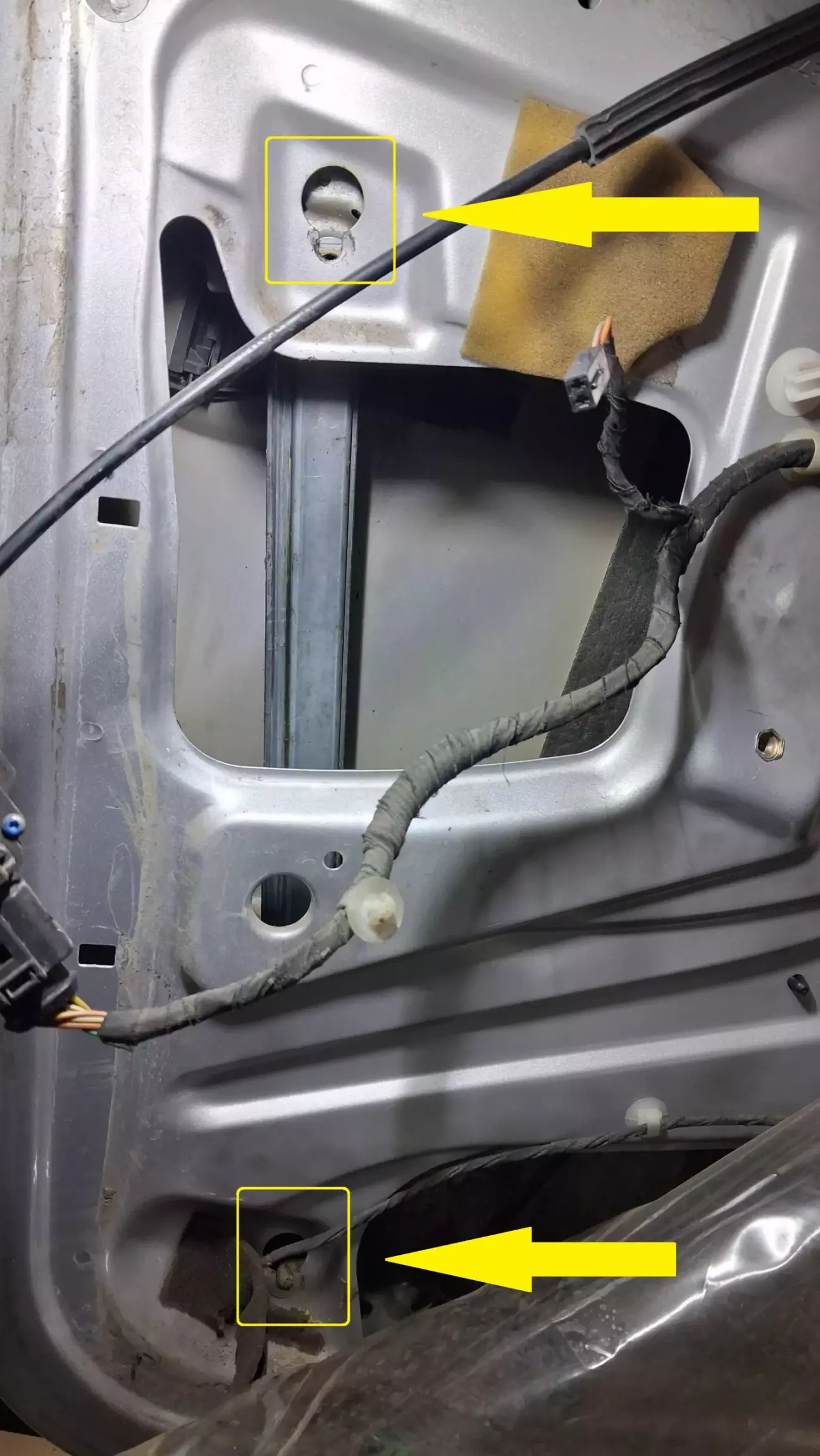 Щоб спокійно зняти замок, потрібно додатково відкрутити 2 гвинти кріплення направляючої склопідіймача.