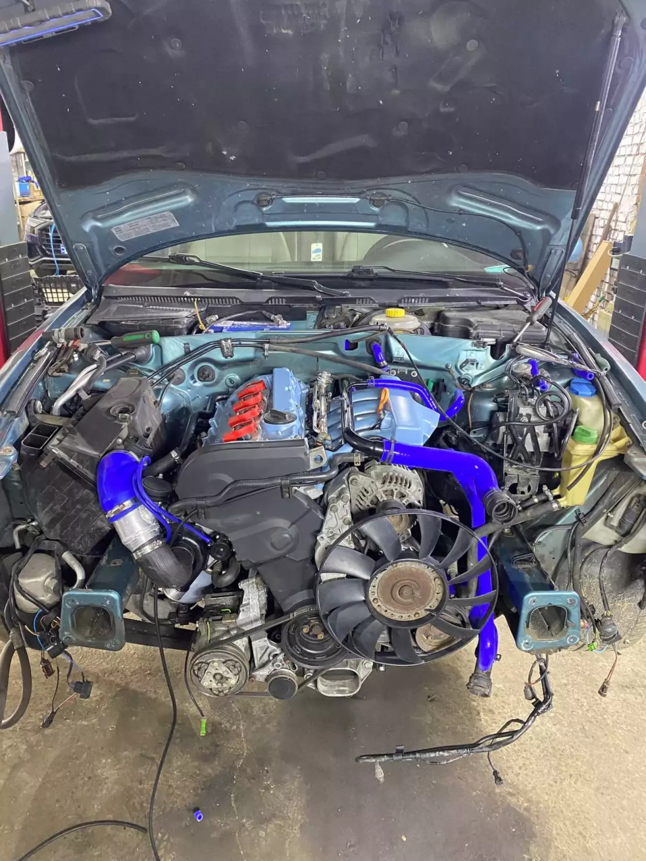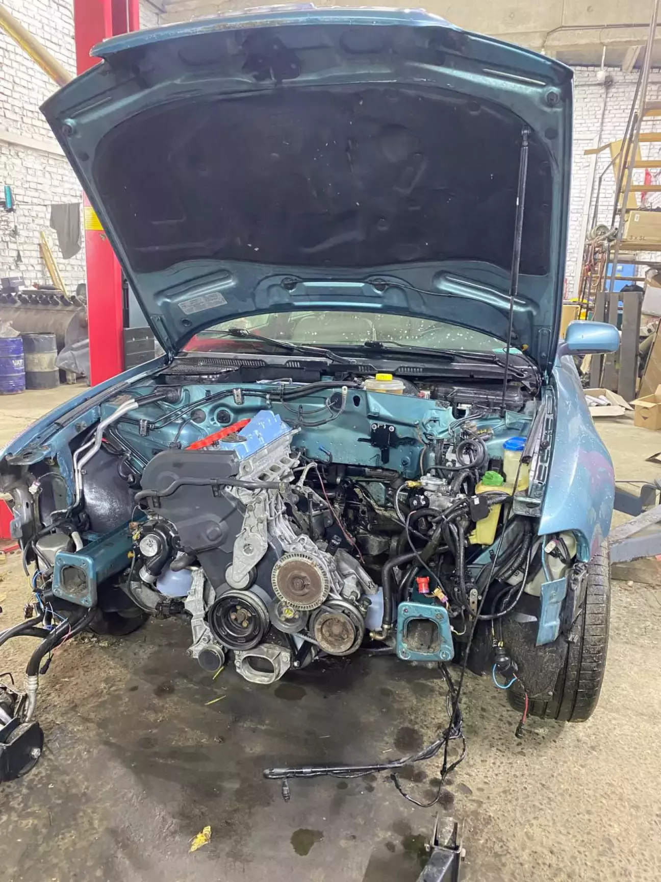 Двигун вже в авто і все зібрано по жалізякам. Лишається проводка. Вона буде інша. Стара повністю викидується, оскільки ми переходимо з до реста в рест. З атмо в турбо і на мозги з широкополосной лямбдой bosch 7.5ME.