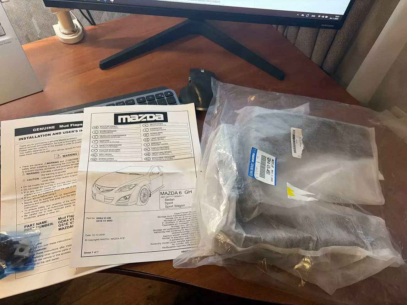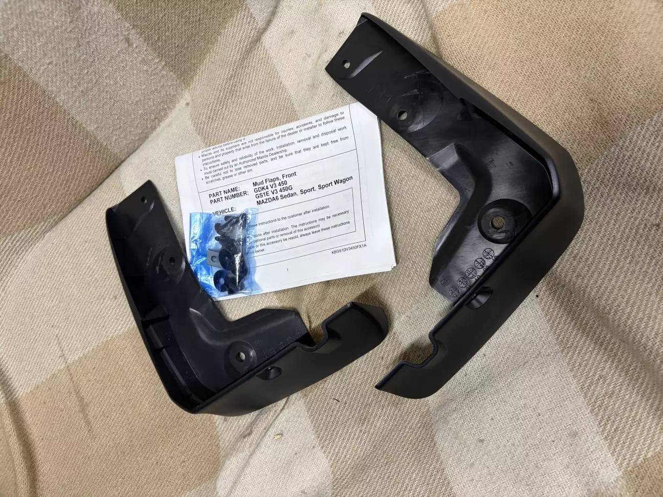 Всім привіт! Після заміни задніх бризковиків на оригінальні, передні почали мене дуже дратувати, захотілось теж встановити оригінальні. Але ціна на них як на мене трохи зависока. Трохи поборовся із зеленою істотою та врешті-решт все-таки замовив. Чекати довелось 2 тижні, але це вартувало того. В комплекті все що потрібно для встановлення.