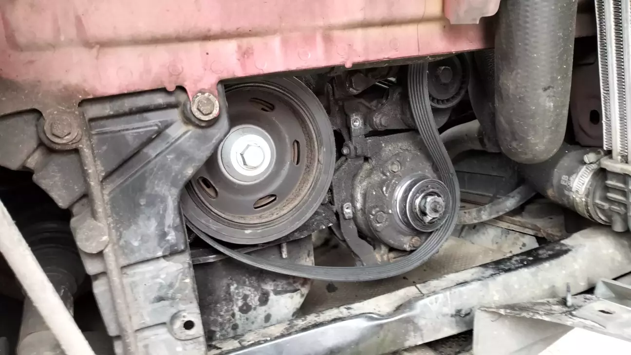 Підкинули більш короткий ремінь генератора, щоб доїхати. Для тих, хто опинитися в такий ситуації, довжина ременя в обхід шківа компресора 850мм. Оригінальний 1005мм. Доступ там нормальний з правої сторони, треба зняти колесо та захист.