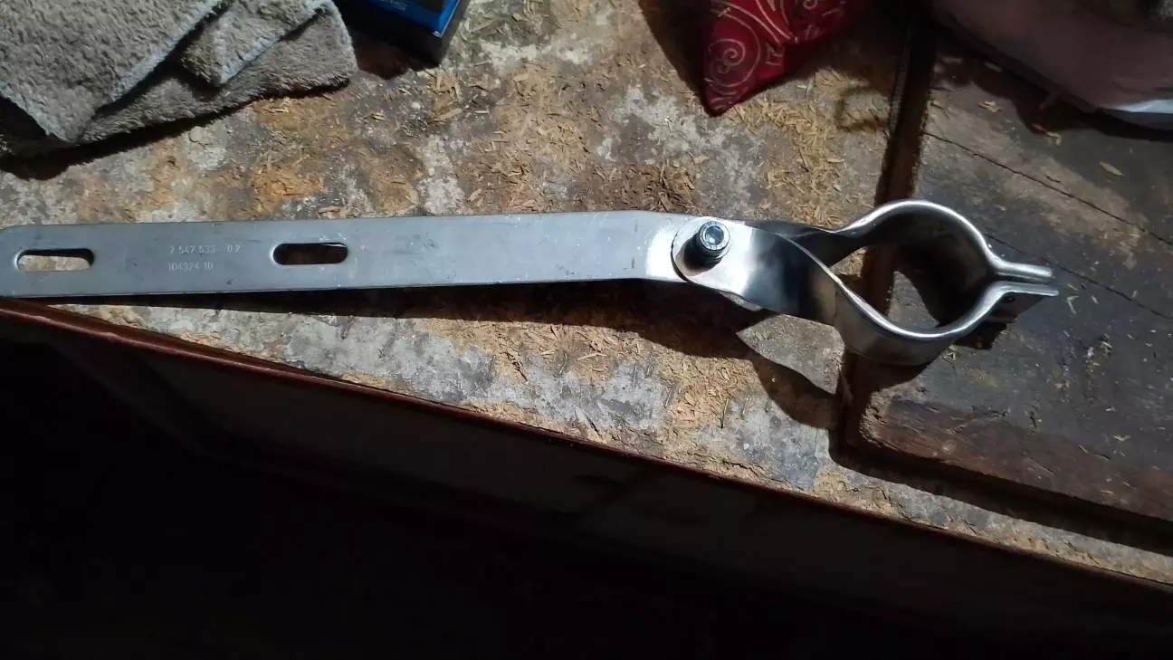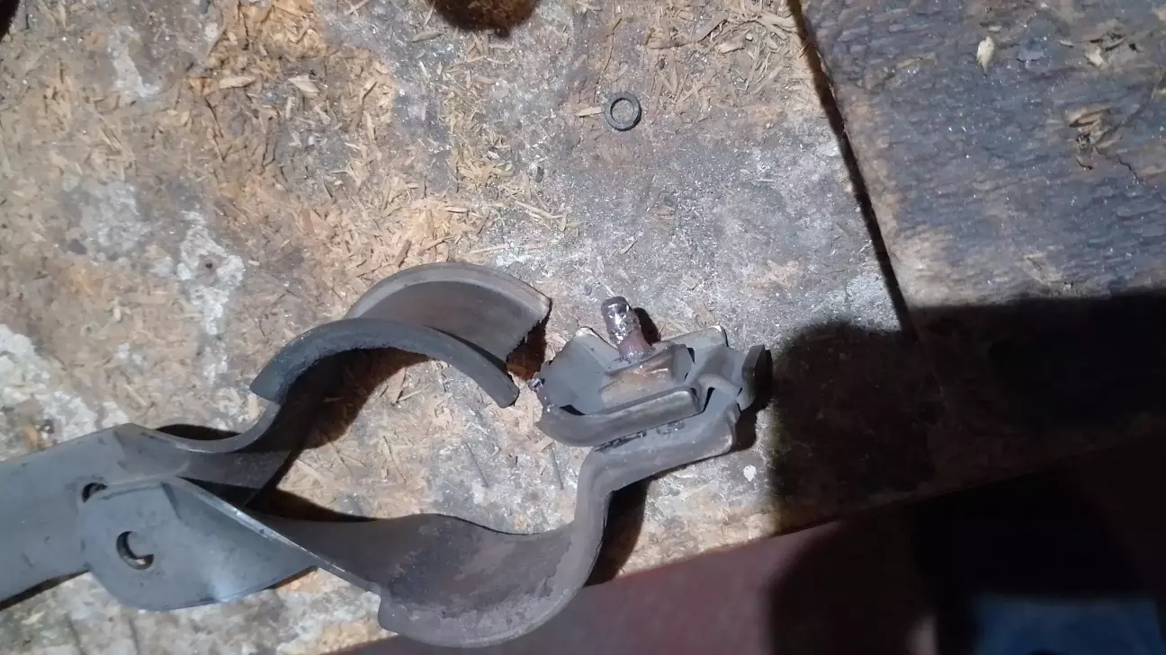 При нажатии на педаль газа появлялся звук скрежета металла, причина была в лопнувшем хомуте и крепежом болте.