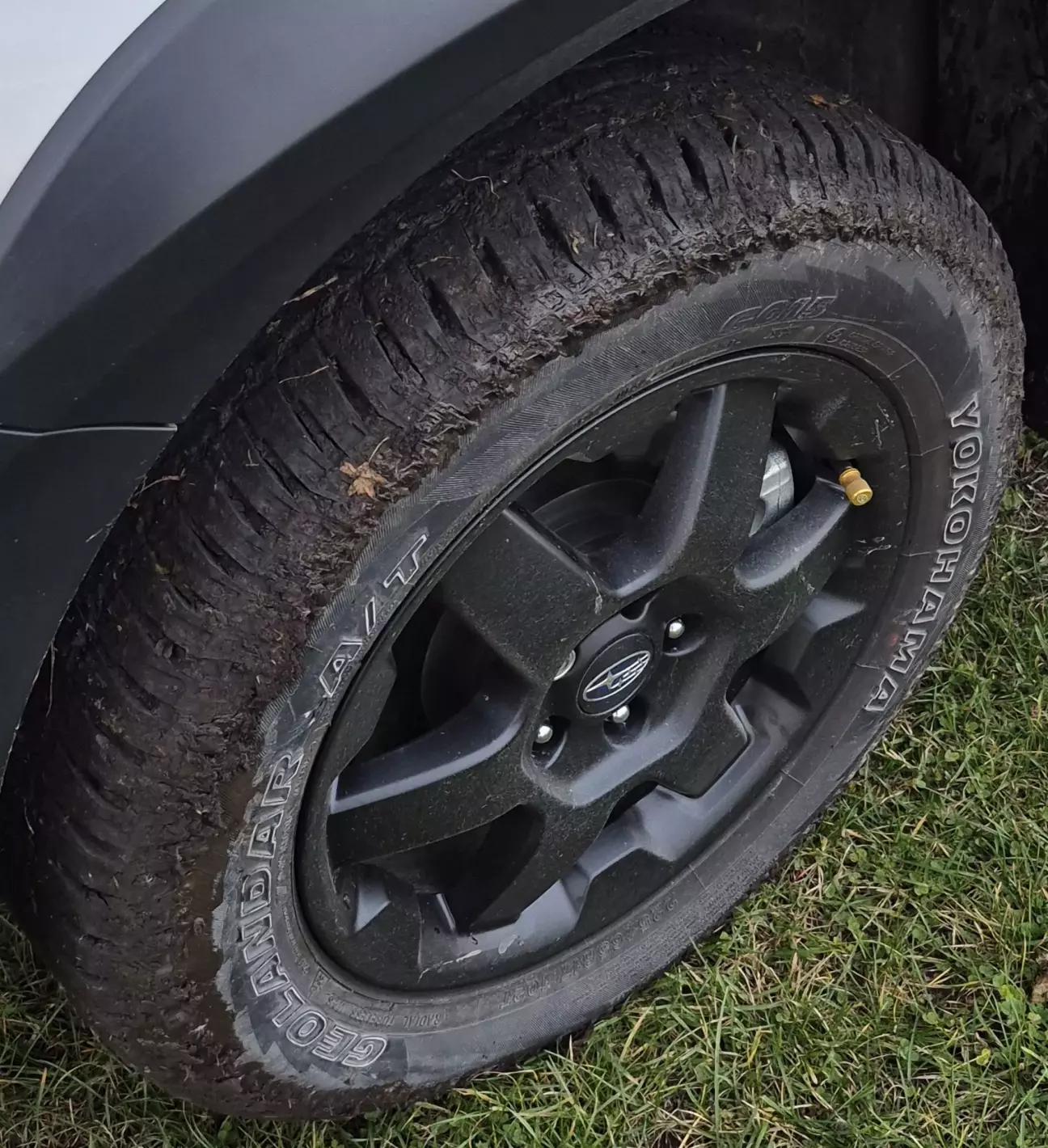 Довелось викидати дві шини, а не одну. В підсумку маю 4 цілих шин АТ, 2 пошкоджені АТ шини, які вирішив викинути і пошкоджений диск. Останній пізніше реставрую.