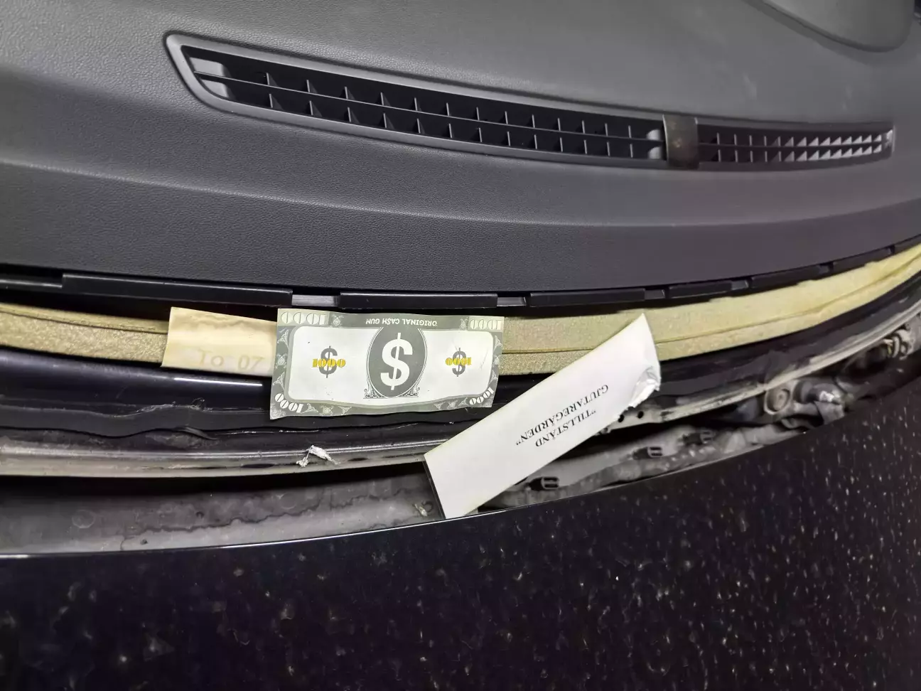 Під старим склом знайдено подарунок від майстрів. Незрозумілий напис, типу гроші і бірка від старого скла :) а ще вони залепили таракана на герметик. Кончені)