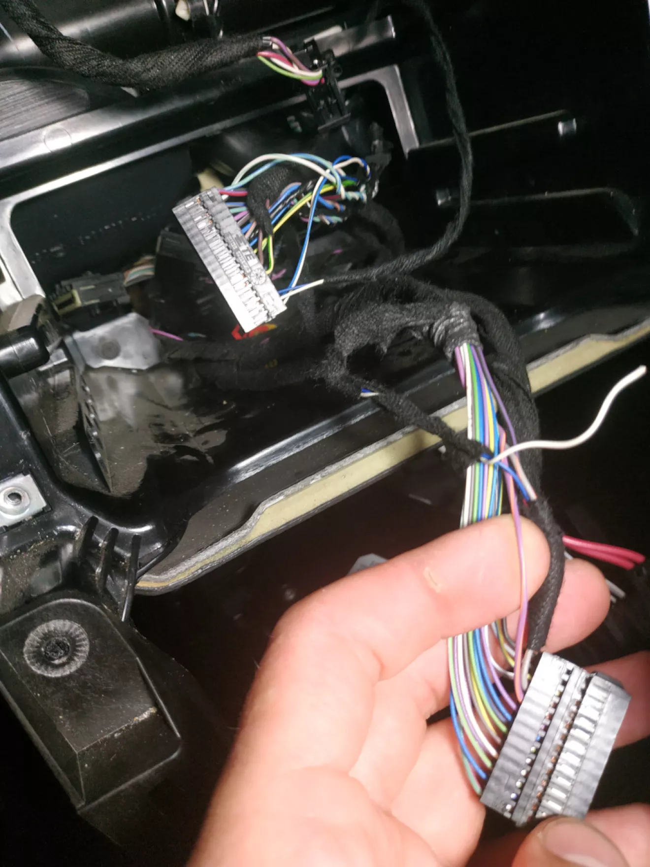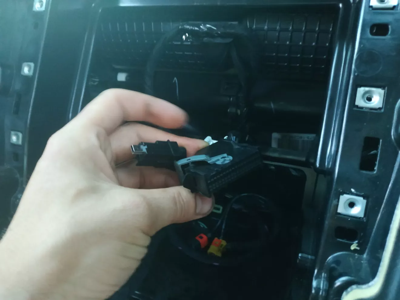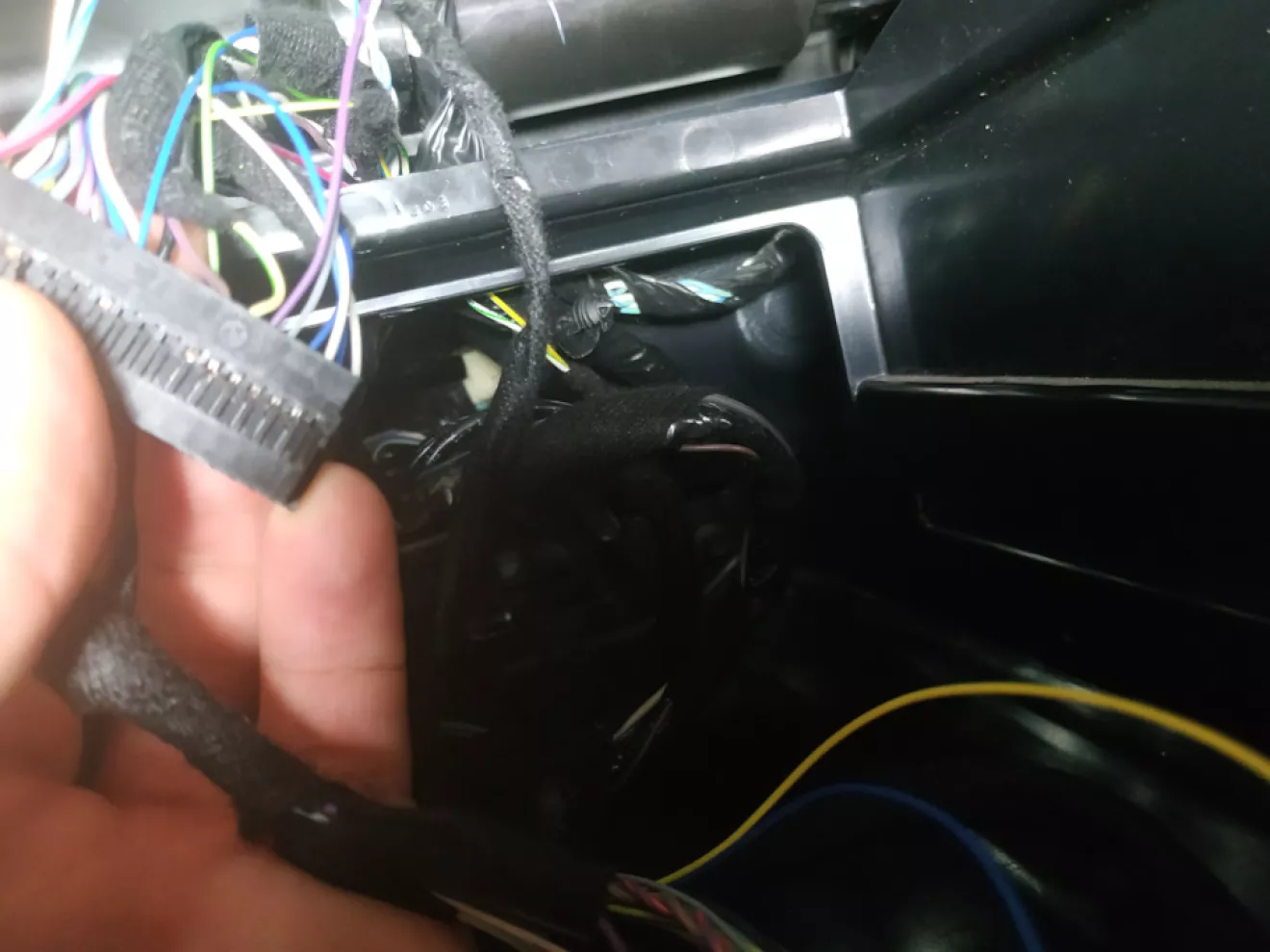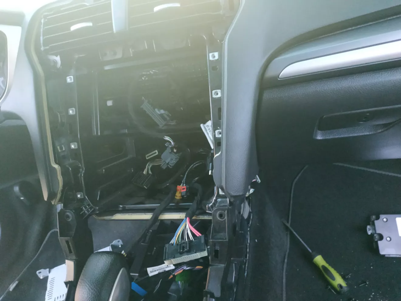 Первое что нужно сделать это разобрать все, и добраться до APIM, он стоит посередине под печкой, со стороны пассажира нужно отвёрткой под ним нажать фиксатор и он выйдет.Разьемы от него нужно вывести наверх где стоит экран.Что важно шнур к хабу в подлокотнике не подходит!Хорошо у меня был в комплекте с синк2.
